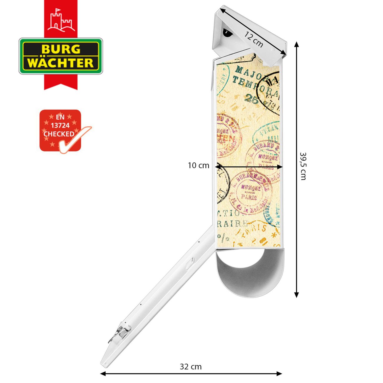 Der BURG-WÄCHTER Stahl Briefkasten mit Stempel Motiv bietet Ihnen mit seinem Fassungsvermögen genügend Platz auch für große A4 Sendungen und Zeitschriften. Das integrierte Regendach schützt Ihre Post vor dem Eindringen von Regen.