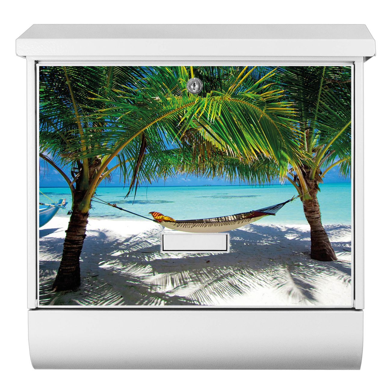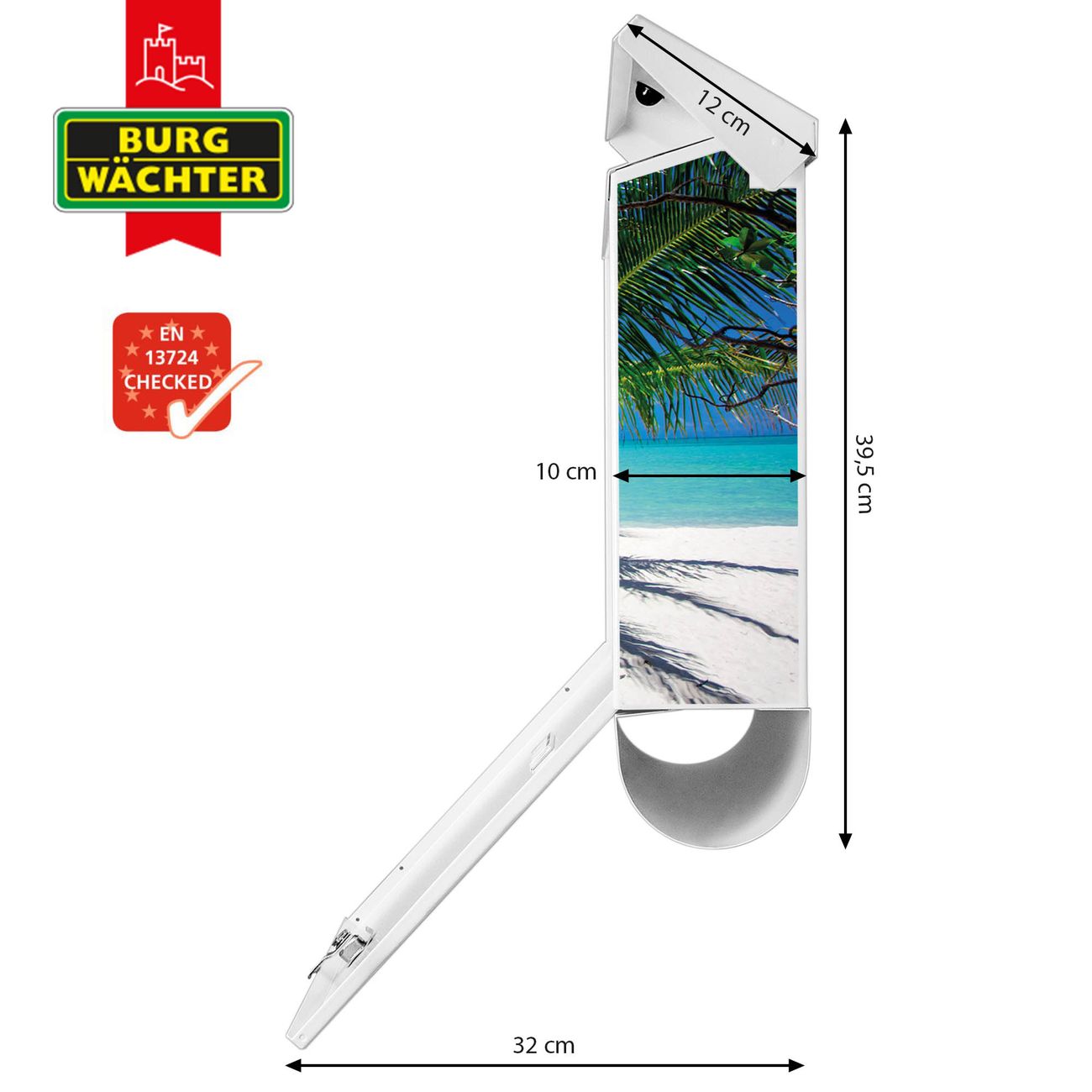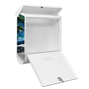 Der BURG-WÄCHTER Stahl Briefkasten mit Strand Motiv bietet Ihnen mit seinem Fassungsvermögen genügend Platz auch für große A4 Sendungen und Zeitschriften. Das integrierte Regendach schützt Ihre Post vor dem Eindringen von Regen.