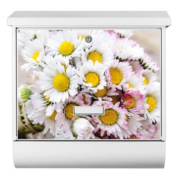 Der BURG-WÄCHTER Stahl Briefkasten mit Strauß Gänseblümchen Motiv bietet Ihnen mit seinem Fassungsvermögen genügend Platz auch für große A4 Sendungen und Zeitschriften. Das integrierte Regendach schützt Ihre Post vor dem Eindringen von Regen.