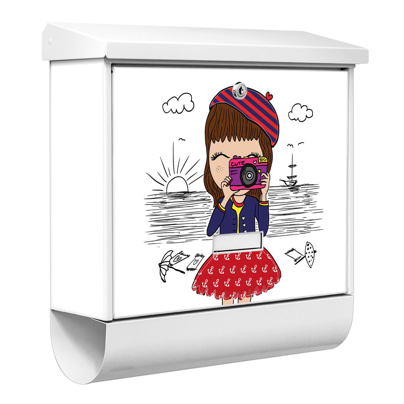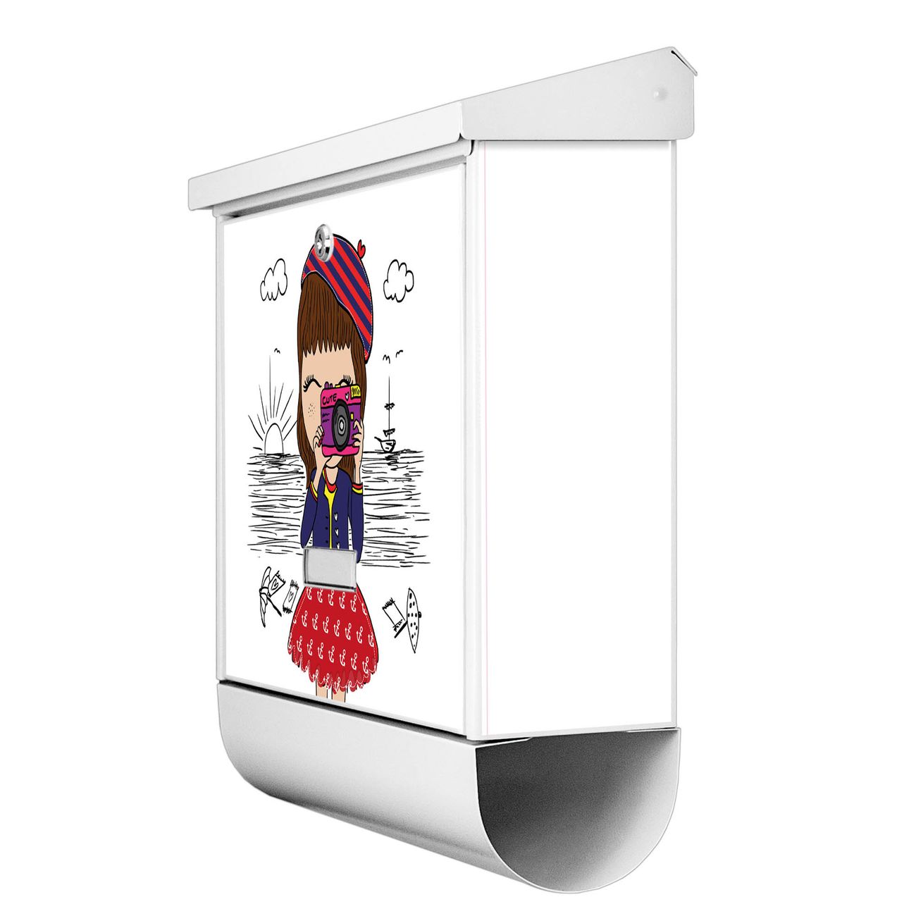 Der BURG-WÄCHTER Stahl Briefkasten mit Süße Kamera Motiv bietet Ihnen mit seinem Fassungsvermögen genügend Platz auch für große A4 Sendungen und Zeitschriften. Das integrierte Regendach schützt Ihre Post vor dem Eindringen von Regen.