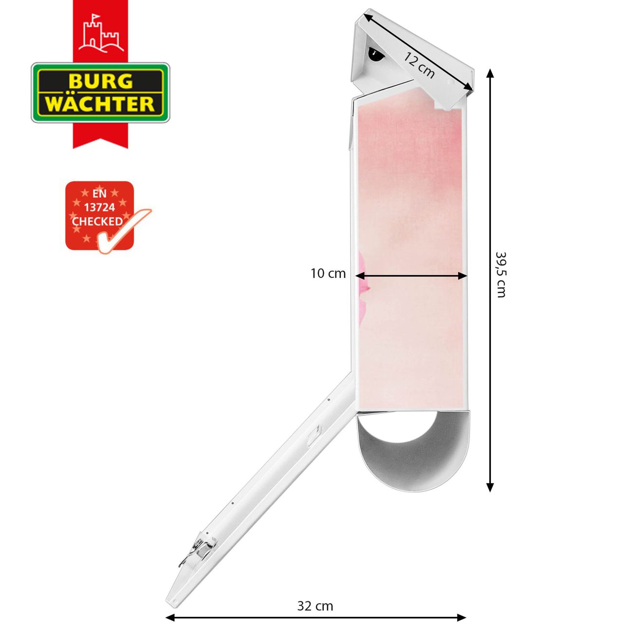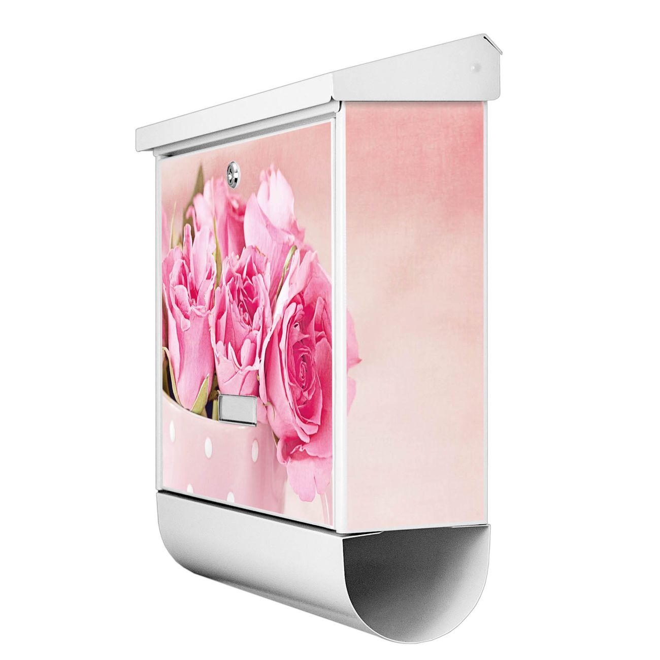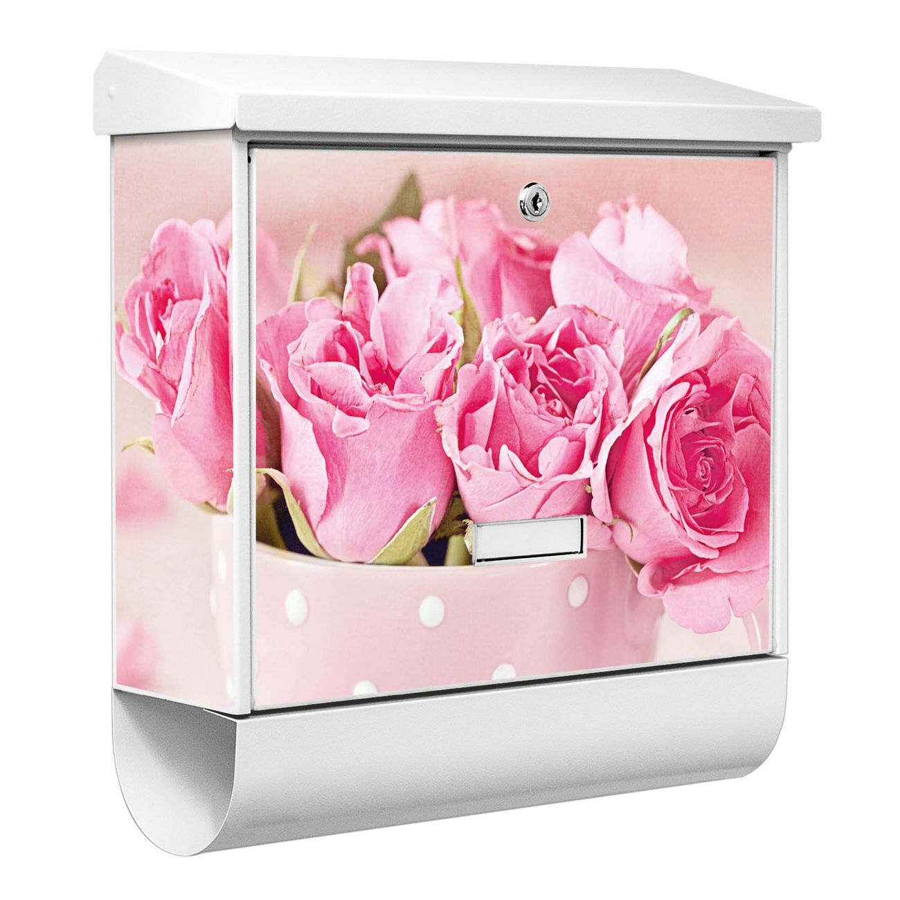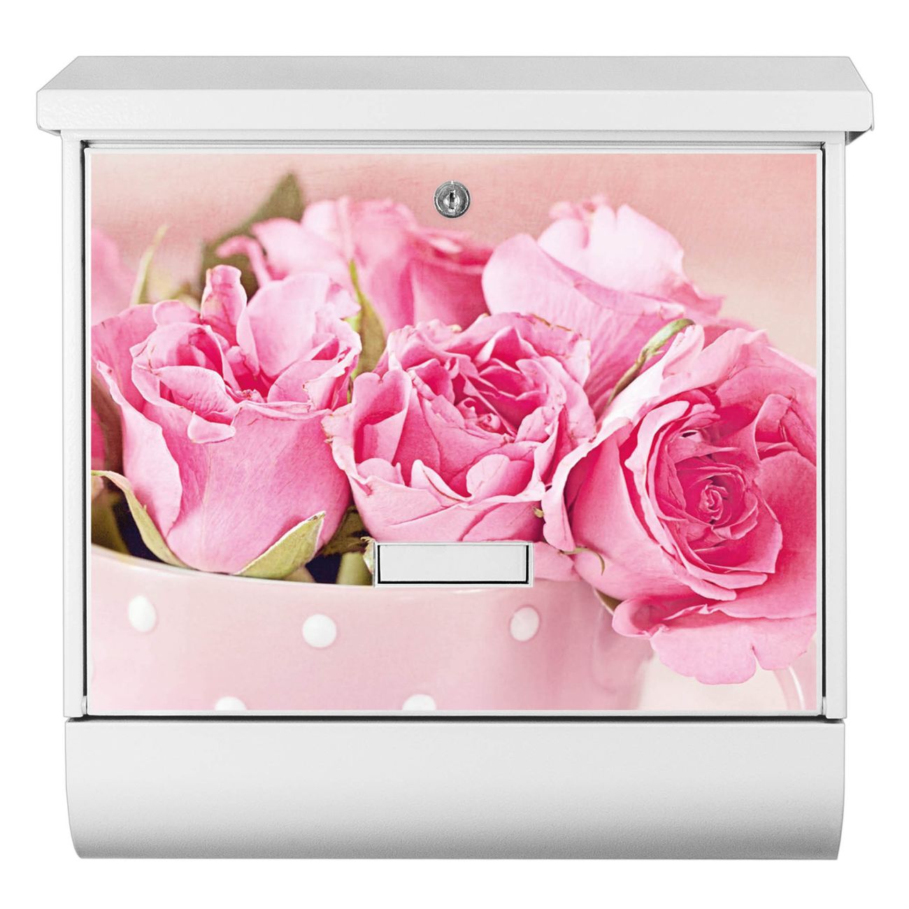 Der BURG-WÄCHTER Stahl Briefkasten mit Tasse Voll Rosen Motiv bietet Ihnen mit seinem Fassungsvermögen genügend Platz auch für große A4 Sendungen und Zeitschriften. Das integrierte Regendach schützt Ihre Post vor dem Eindringen von Regen.