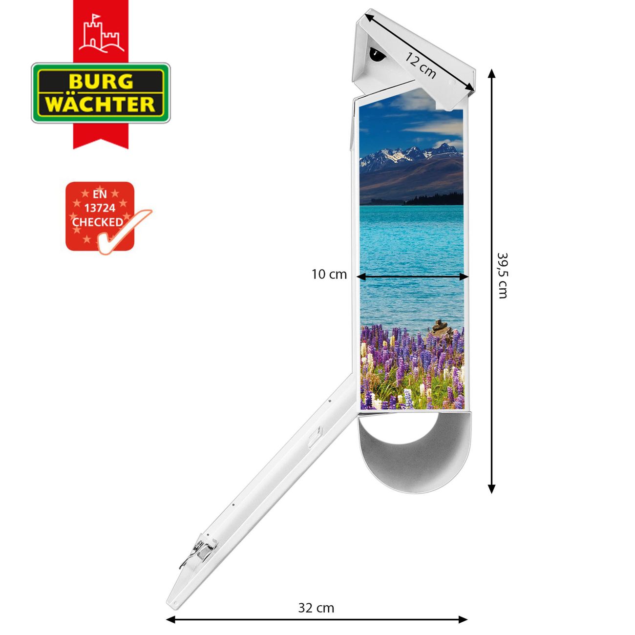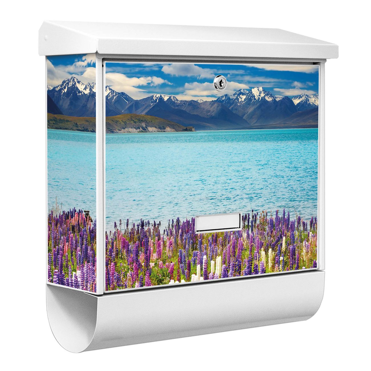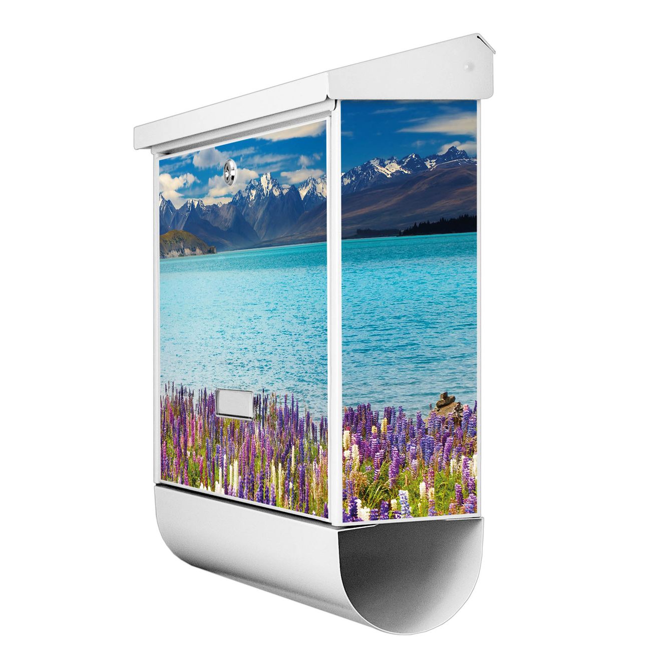 Der BURG-WÄCHTER Stahl Briefkasten mit Tekapo See Motiv bietet Ihnen mit seinem Fassungsvermögen genügend Platz auch für große A4 Sendungen und Zeitschriften. Das integrierte Regendach schützt Ihre Post vor dem Eindringen von Regen.