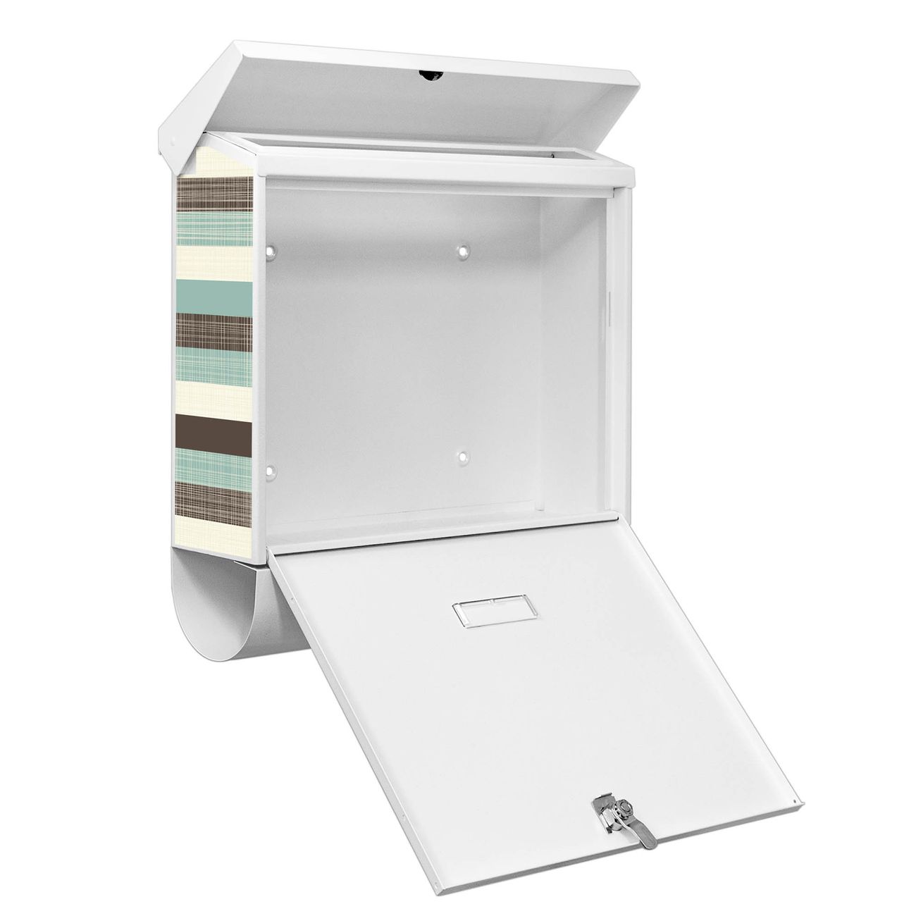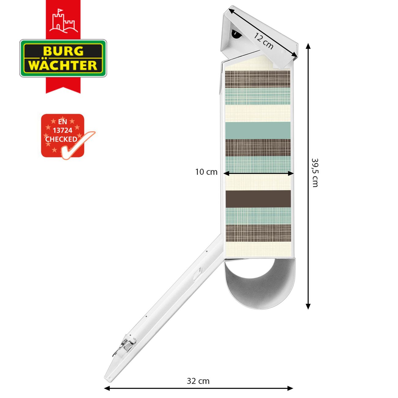 Der BURG-WÄCHTER Stahl Briefkasten mit Textile Streifen Motiv bietet Ihnen mit seinem Fassungsvermögen genügend Platz auch für große A4 Sendungen und Zeitschriften. Das integrierte Regendach schützt Ihre Post vor dem Eindringen von Regen.