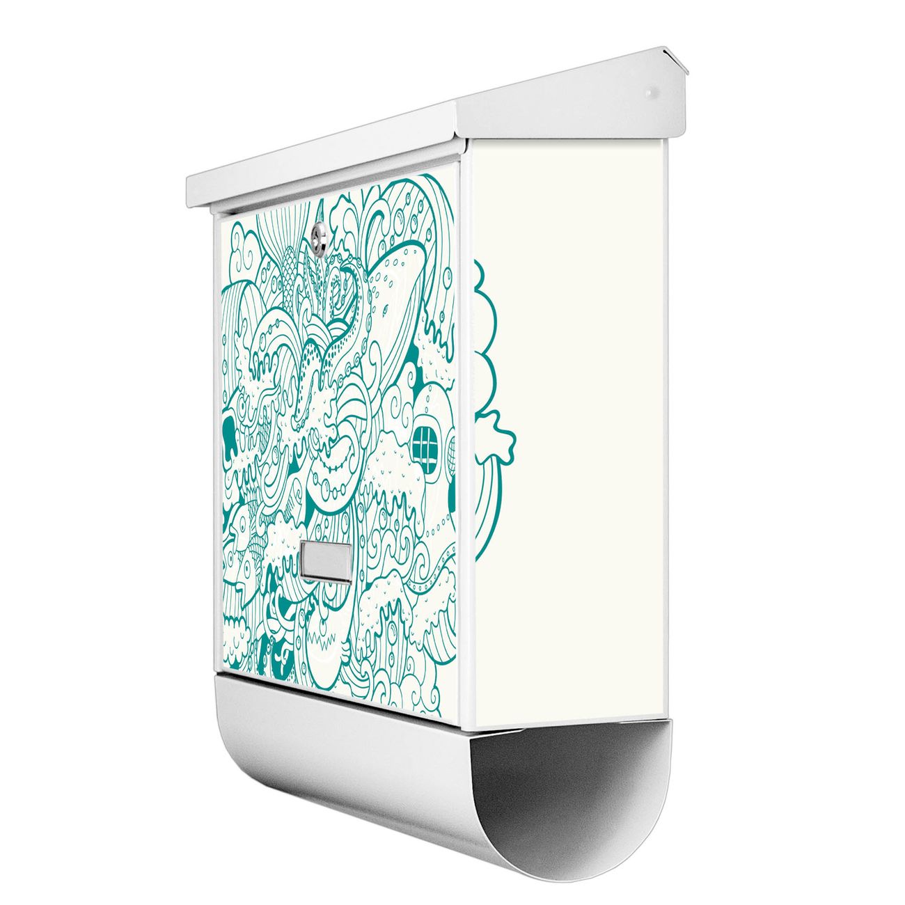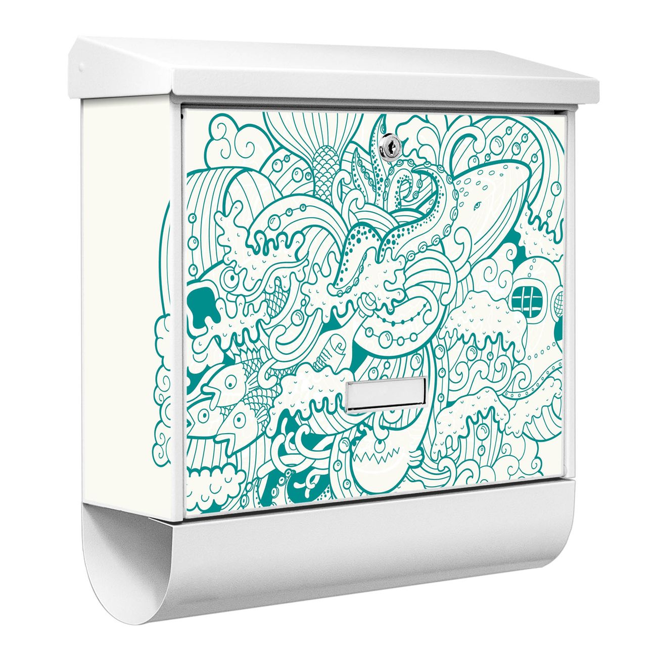 Der BURG-WÄCHTER Stahl Briefkasten mit Tiefsee Motiv bietet Ihnen mit seinem Fassungsvermögen genügend Platz auch für große A4 Sendungen und Zeitschriften. Das integrierte Regendach schützt Ihre Post vor dem Eindringen von Regen.