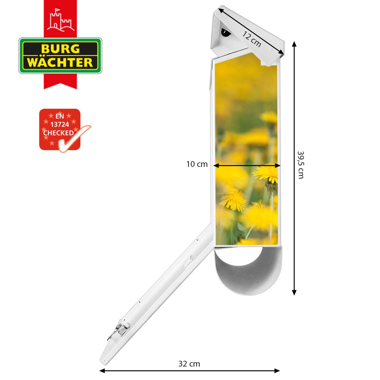 Der BURG-WÄCHTER Stahl Briefkasten mit Tiffy Motiv bietet Ihnen mit seinem Fassungsvermögen genügend Platz auch für große A4 Sendungen und Zeitschriften. Das integrierte Regendach schützt Ihre Post vor dem Eindringen von Regen.
