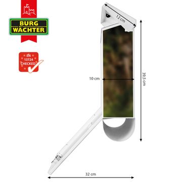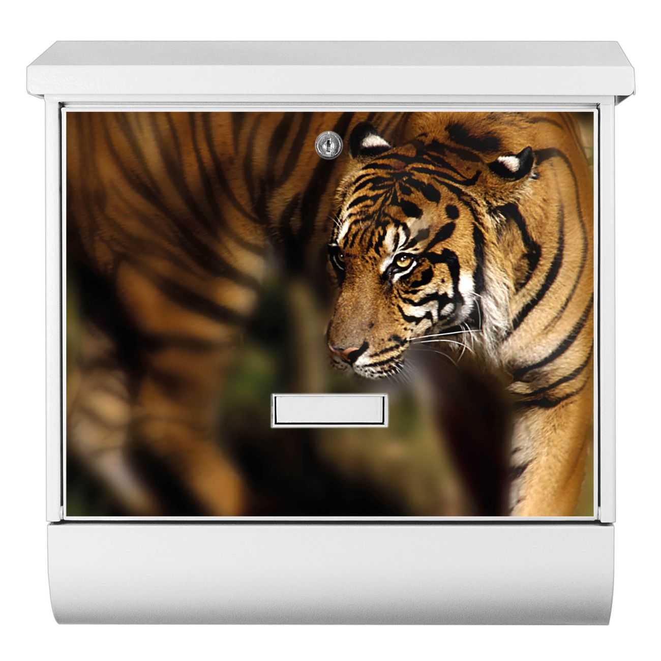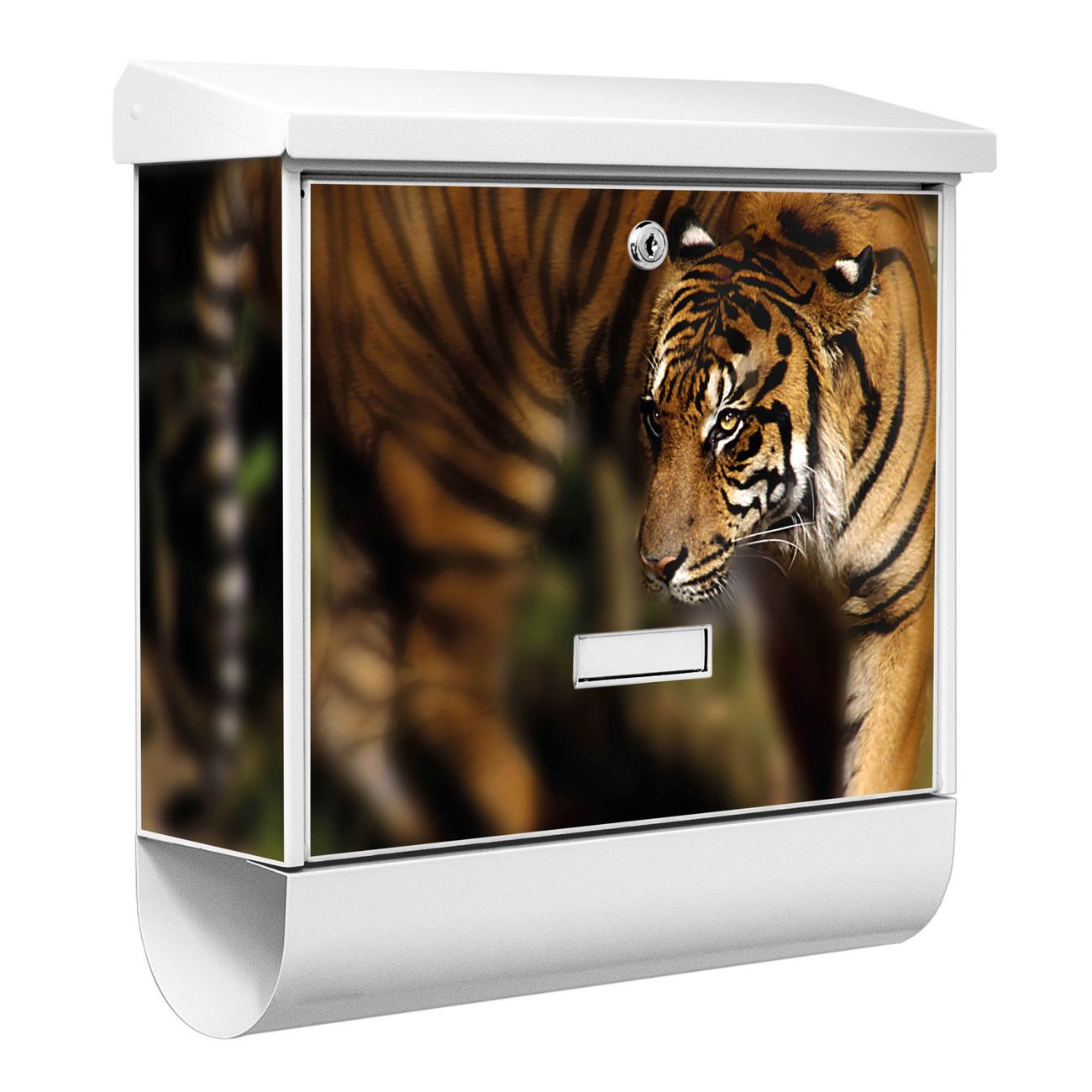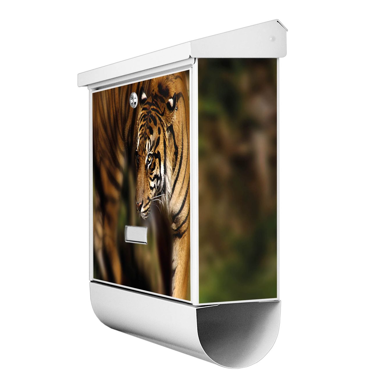 Der BURG-WÄCHTER Stahl Briefkasten mit Tiger Motiv bietet Ihnen mit seinem Fassungsvermögen genügend Platz auch für große A4 Sendungen und Zeitschriften. Das integrierte Regendach schützt Ihre Post vor dem Eindringen von Regen.