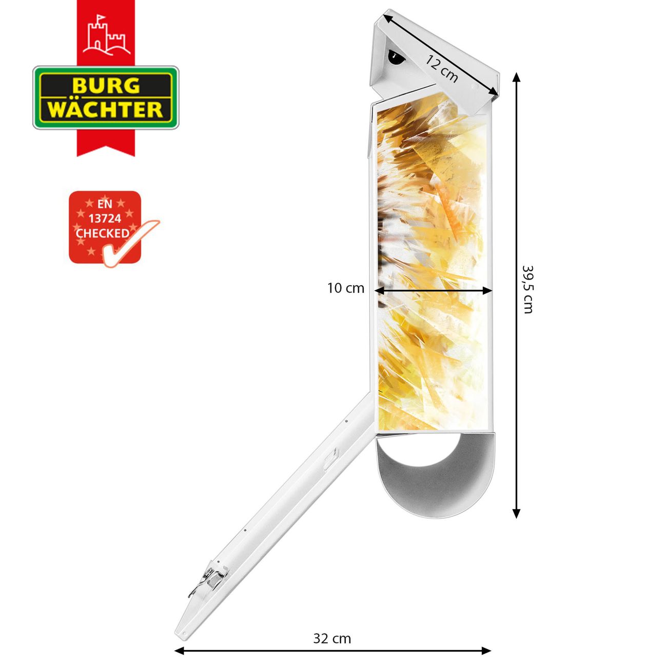 Der BURG-WÄCHTER Stahl Briefkasten mit Tigerkopf Motiv bietet Ihnen mit seinem Fassungsvermögen genügend Platz auch für große A4 Sendungen und Zeitschriften. Das integrierte Regendach schützt Ihre Post vor dem Eindringen von Regen.
