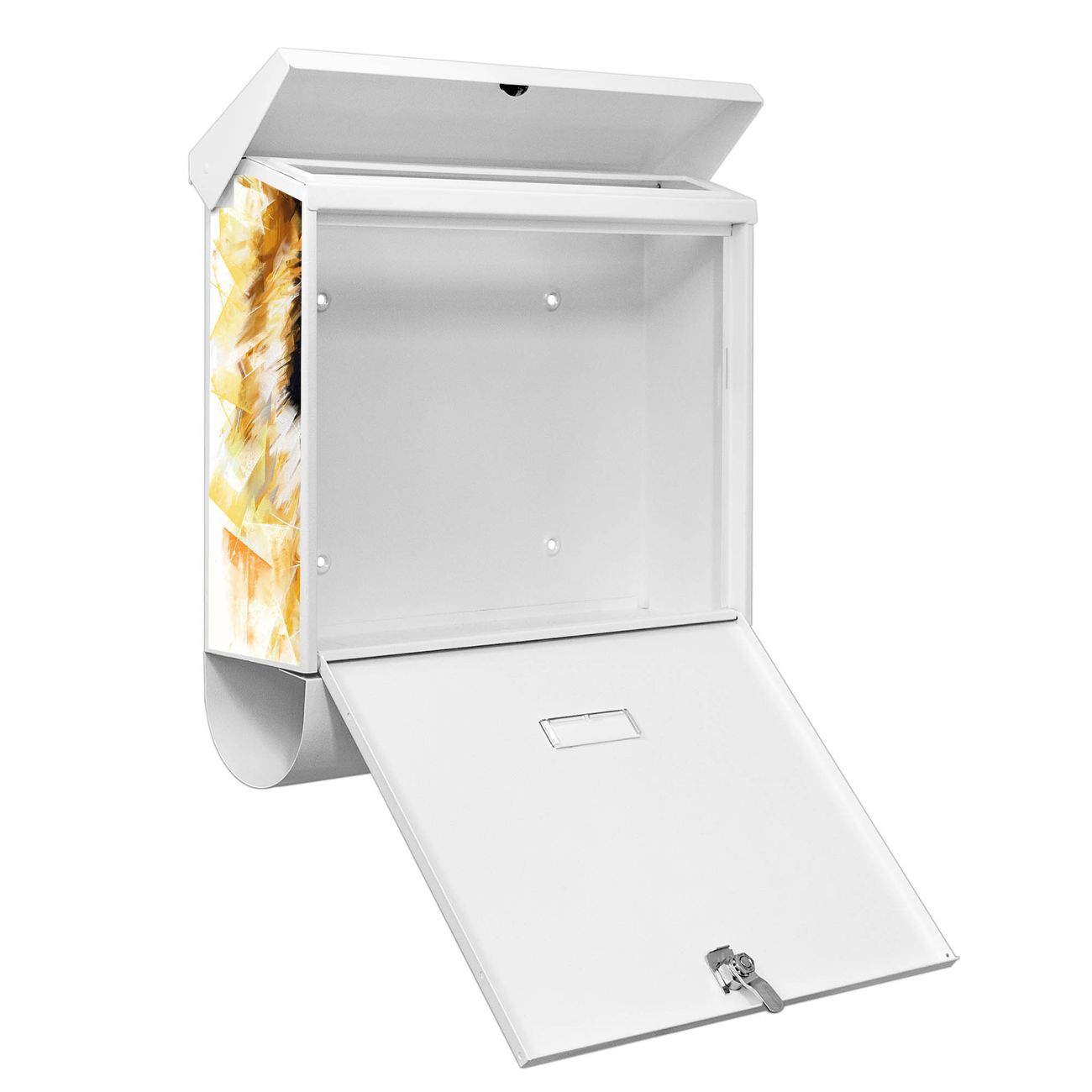 Der Briefkasten besteht aus Stahl, einem hochwertigen Material das äußerst unempfindlich gegenüber Witterungseinflüssen ist. Das Motiv besteht aus einer wetter- und UV-festen Folie, die Ihren Briefkasten zusätzlich vor Kratzern schützt. Der Postkasten ist 42,5cm hoch, 38cm breit und 11,5cm tief. Der Briefeinwurf ist 33,2cm x 3,1cm, Format DIN C4. Der Briefkasten wird mit Montagematerial und zwei Schlüsseln geliefert.