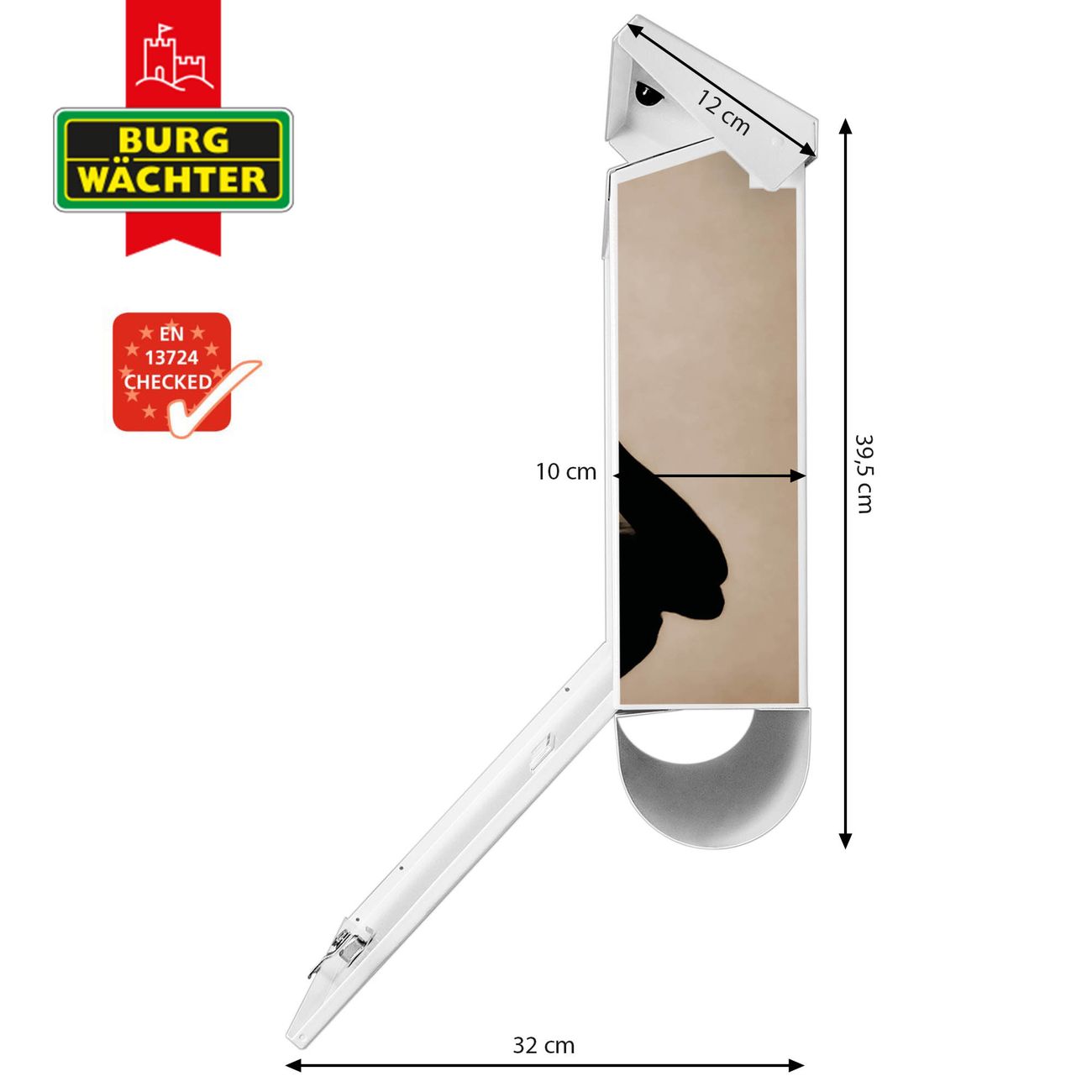 Der BURG-WÄCHTER Stahl Briefkasten mit Tip In Motiv bietet Ihnen mit seinem Fassungsvermögen genügend Platz auch für große A4 Sendungen und Zeitschriften. Das integrierte Regendach schützt Ihre Post vor dem Eindringen von Regen.