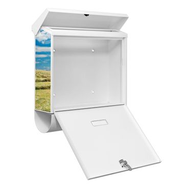Der Briefkasten besteht aus Stahl, einem hochwertigen Material das äußerst unempfindlich gegenüber Witterungseinflüssen ist. Das Motiv besteht aus einer wetter- und UV-festen Folie, die Ihren Briefkasten zusätzlich vor Kratzern schützt. Der Postkasten ist 42,5cm hoch, 38cm breit und 11,5cm tief. Der Briefeinwurf ist 33,2cm x 3,1cm, Format DIN C4. Der Briefkasten wird mit Montagematerial und zwei Schlüsseln geliefert.