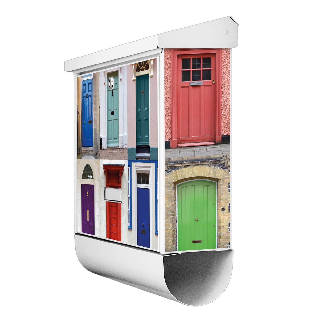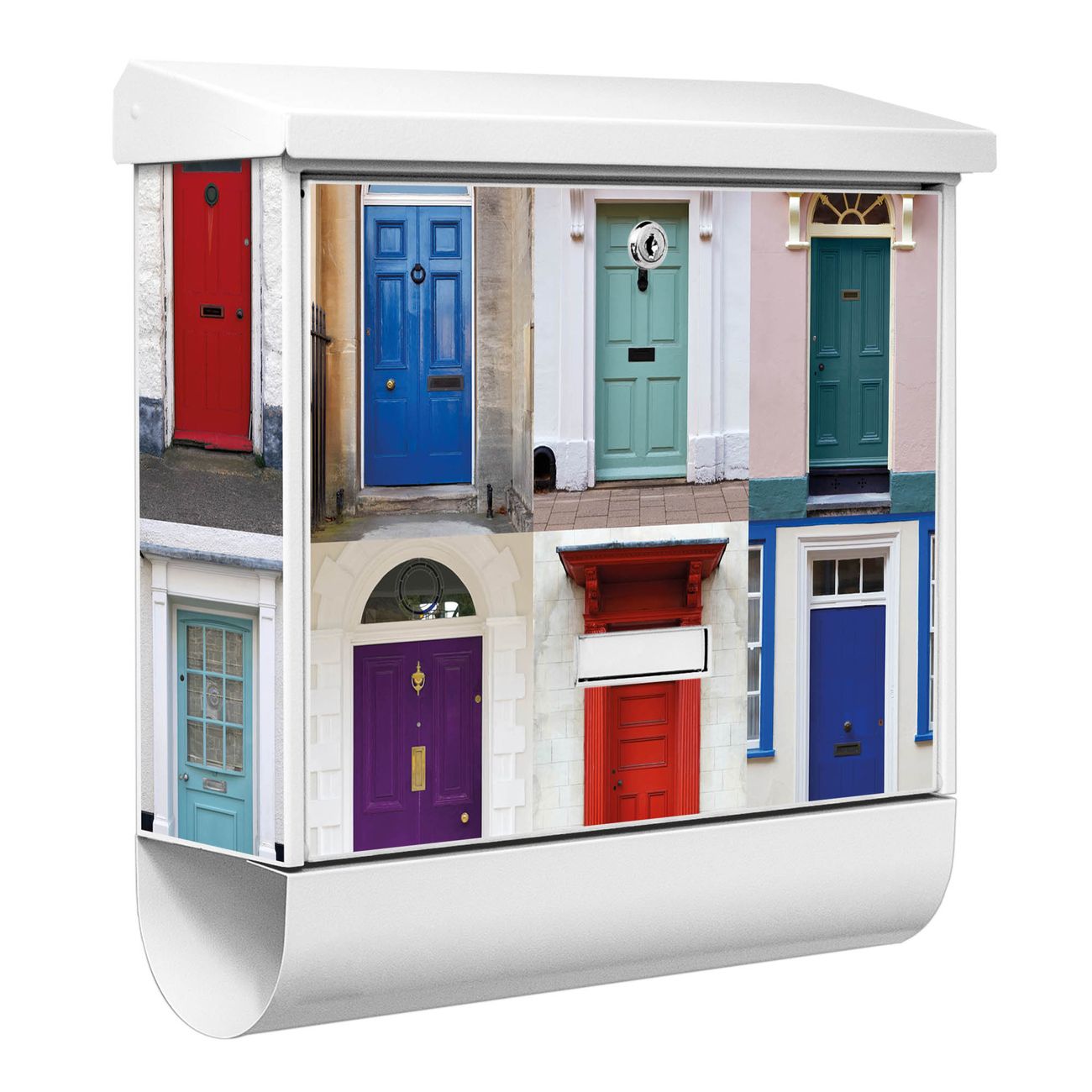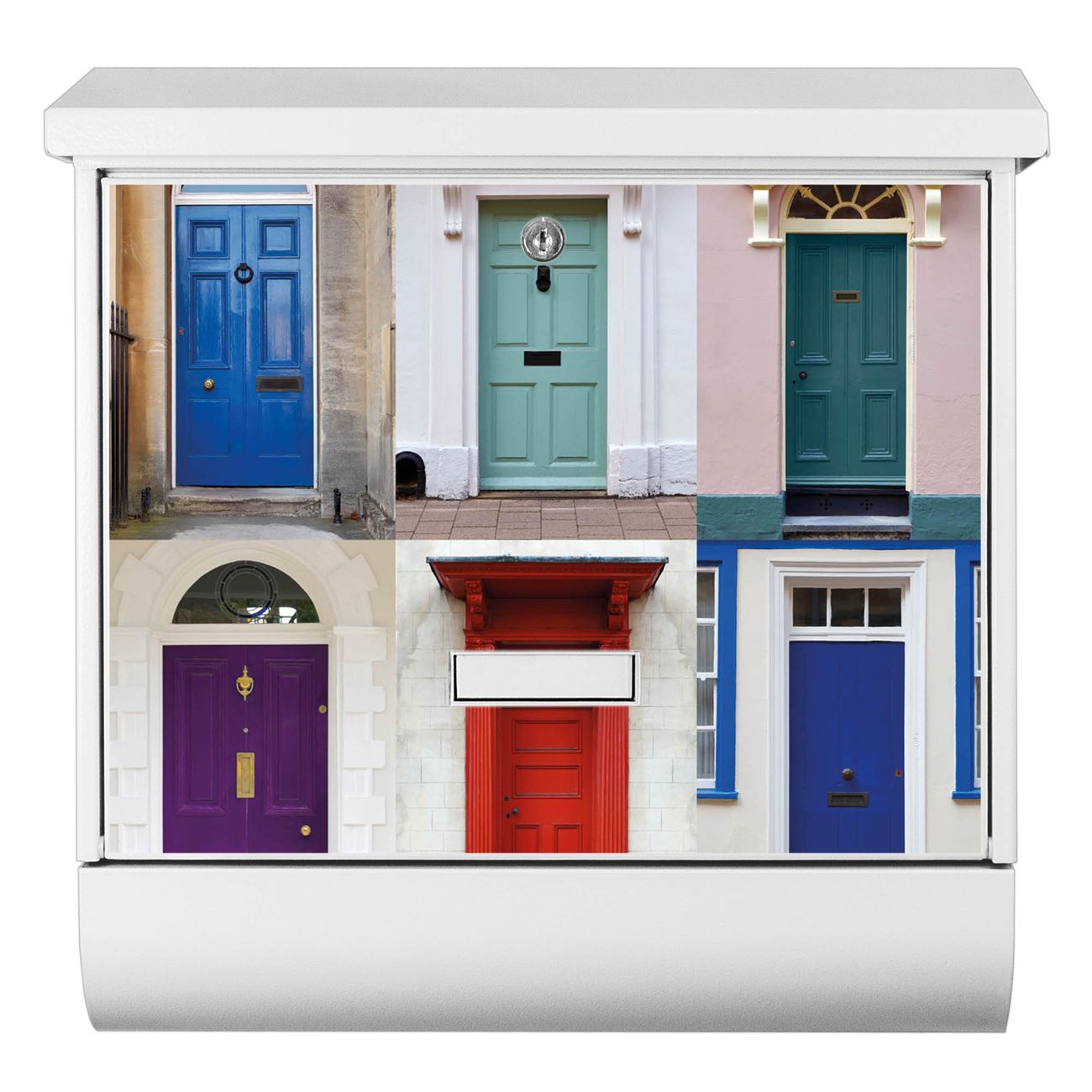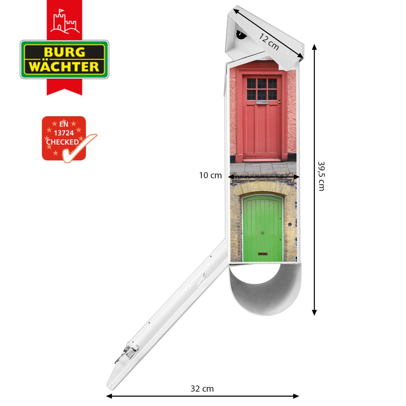Der BURG-WÄCHTER Stahl Briefkasten mit Türen Motiv bietet Ihnen mit seinem Fassungsvermögen genügend Platz auch für große A4 Sendungen und Zeitschriften. Das integrierte Regendach schützt Ihre Post vor dem Eindringen von Regen.