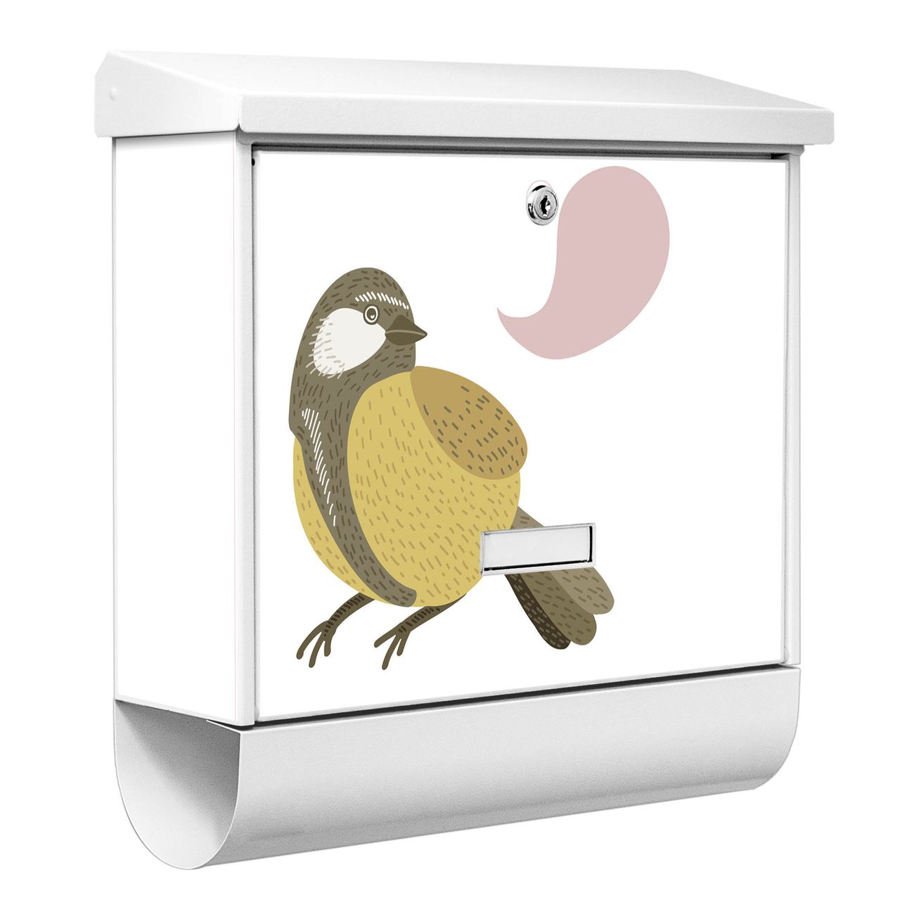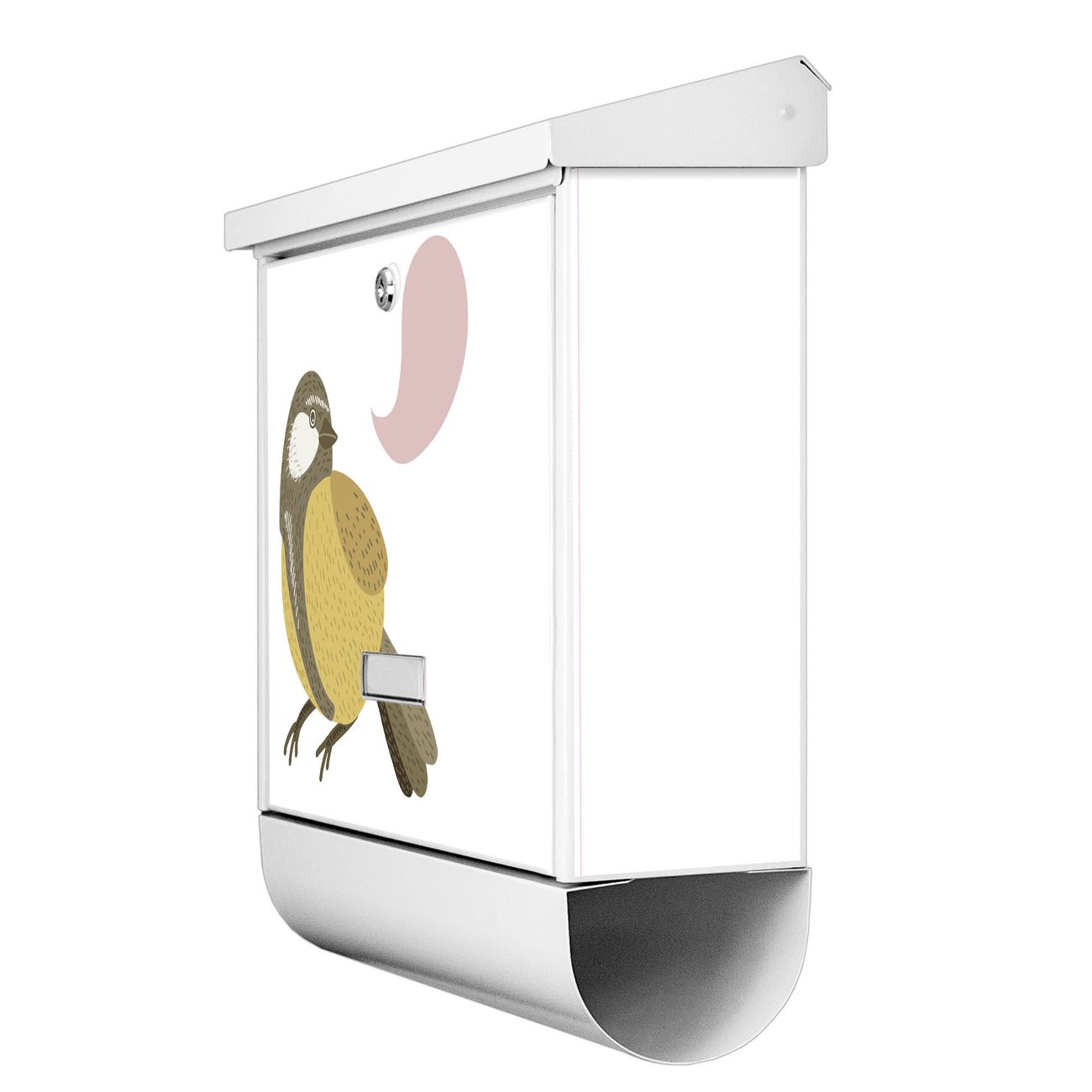 Der BURG-WÄCHTER Stahl Briefkasten mit Vogel mit Sprechblase Motiv bietet Ihnen mit seinem Fassungsvermögen genügend Platz auch für große A4 Sendungen und Zeitschriften. Das integrierte Regendach schützt Ihre Post vor dem Eindringen von Regen.