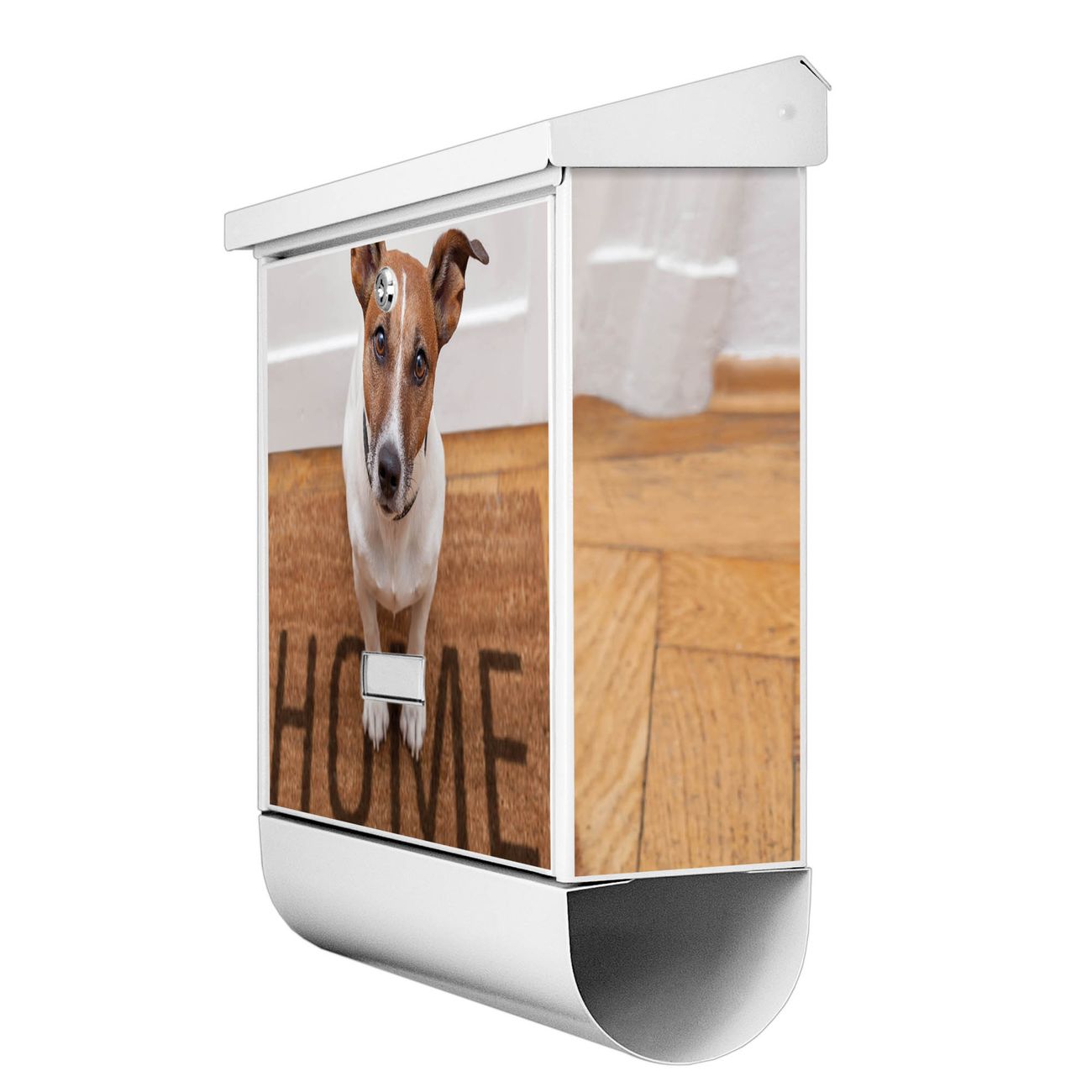 Der BURG-WÄCHTER Stahl Briefkasten mit Wachhund Jack Russel Motiv bietet Ihnen mit seinem Fassungsvermögen genügend Platz auch für große A4 Sendungen und Zeitschriften. Das integrierte Regendach schützt Ihre Post vor dem Eindringen von Regen.