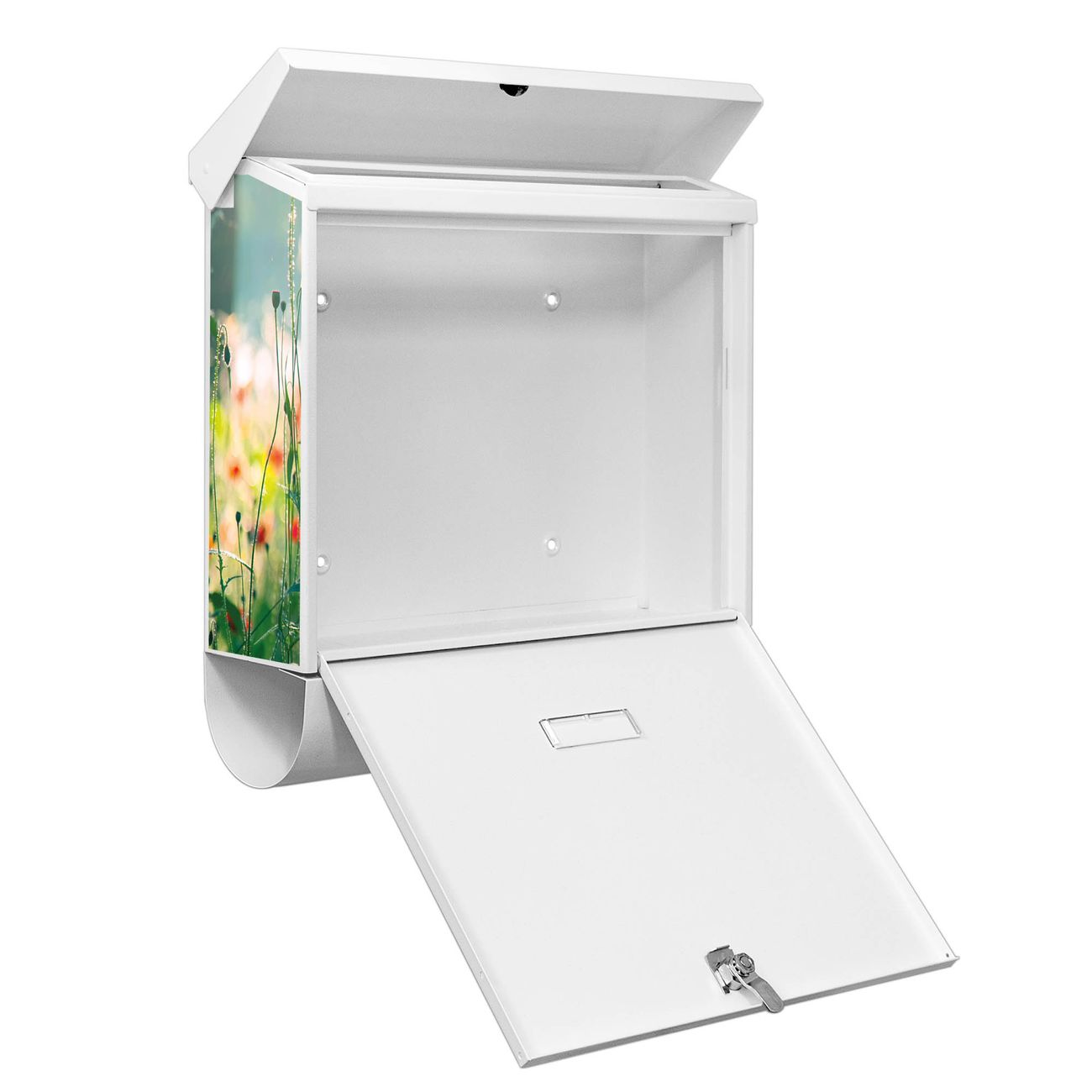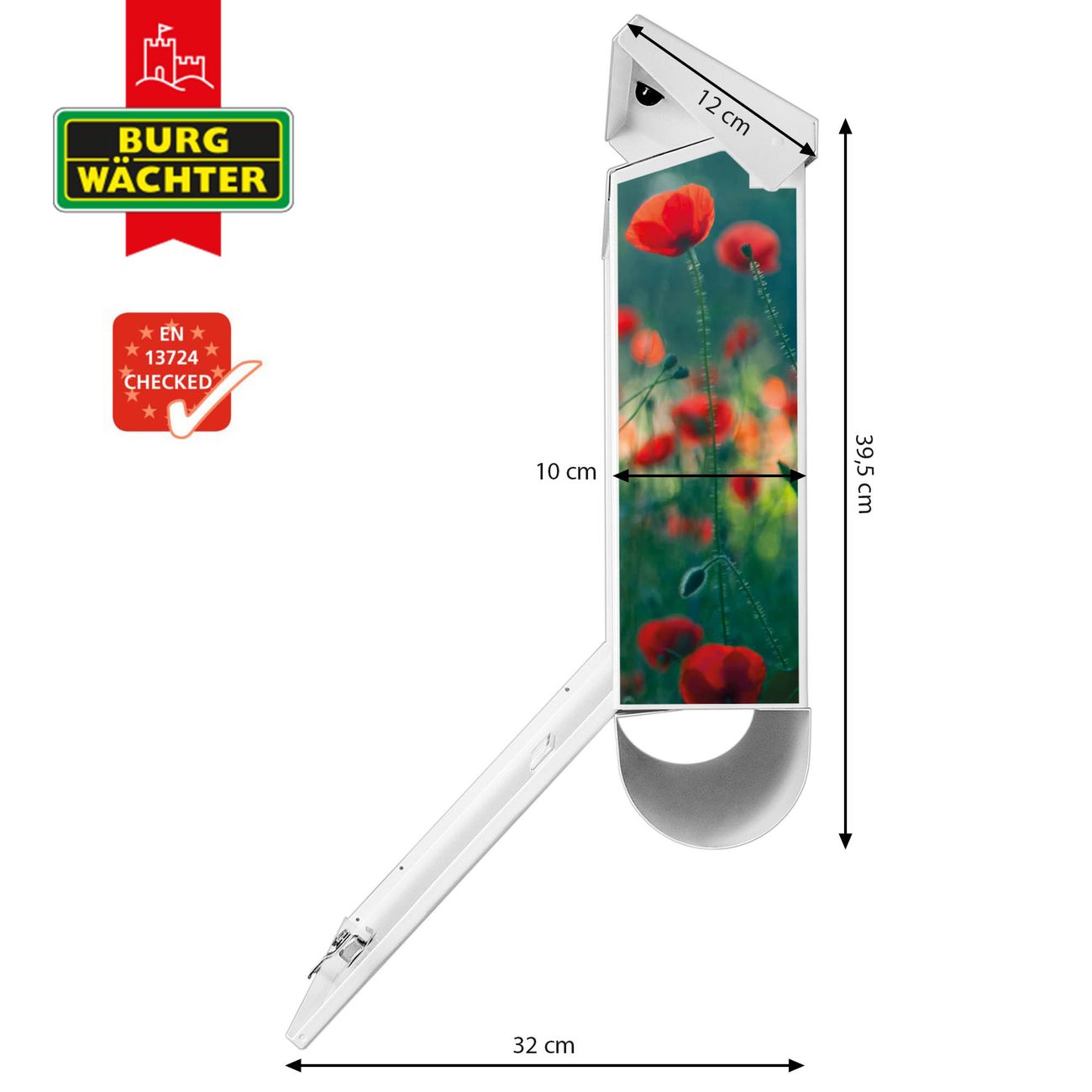 Der BURG-WÄCHTER Stahl Briefkasten mit Waldmohn Motiv bietet Ihnen mit seinem Fassungsvermögen genügend Platz auch für große A4 Sendungen und Zeitschriften. Das integrierte Regendach schützt Ihre Post vor dem Eindringen von Regen.