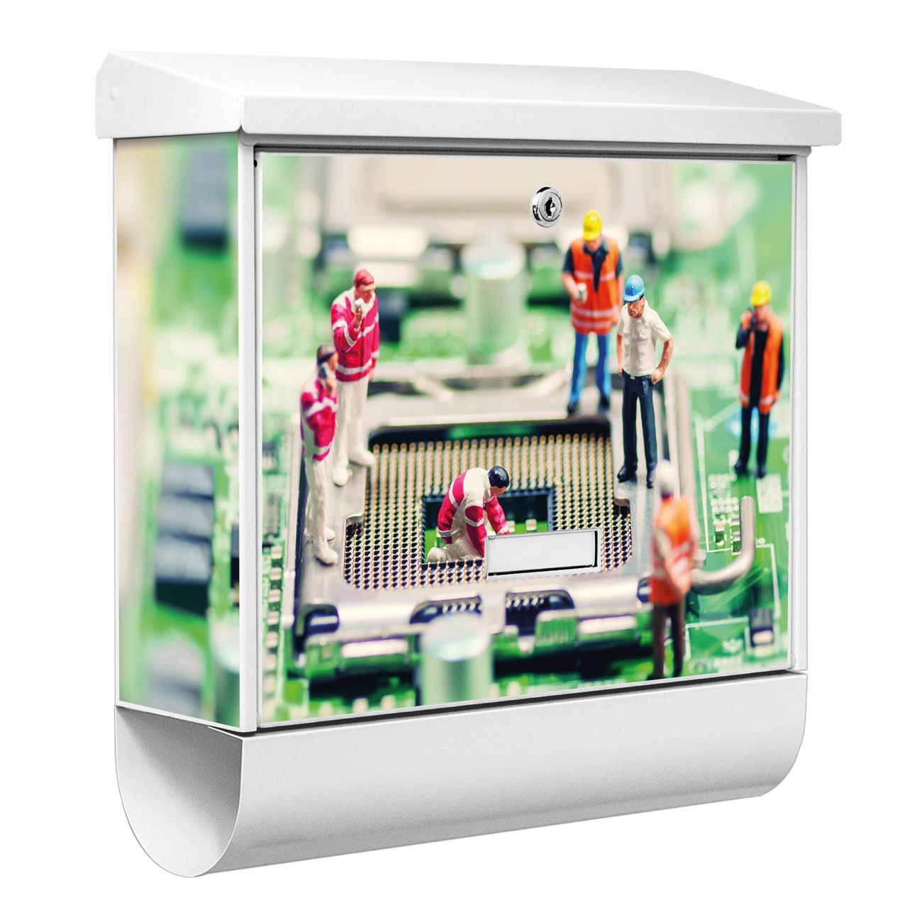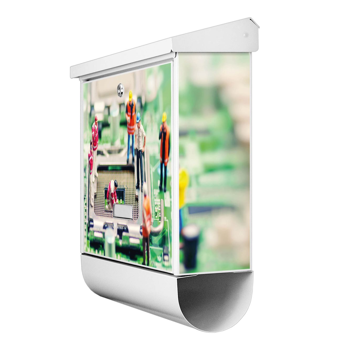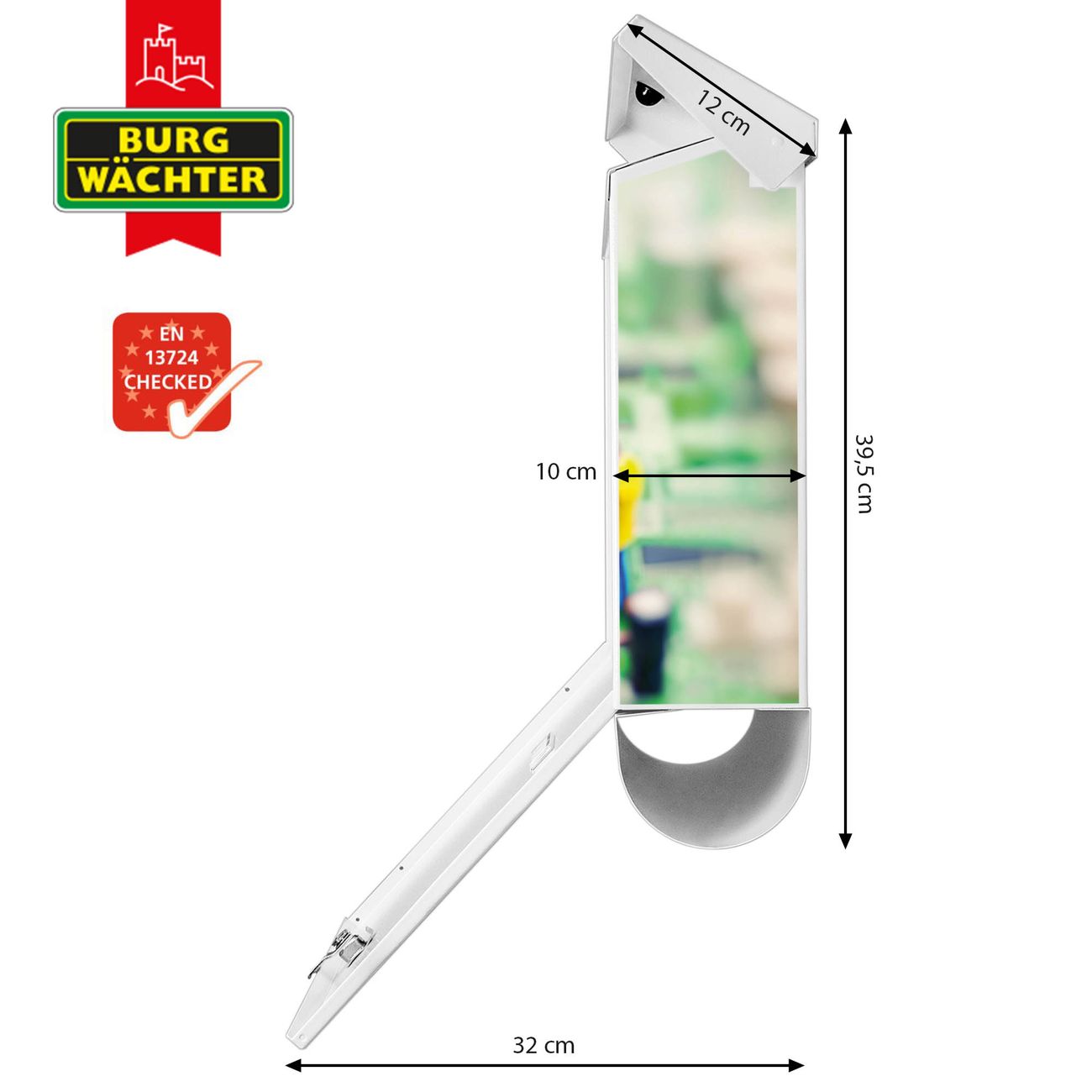 Der BURG-WÄCHTER Stahl Briefkasten mit Wartungsarbeiten Motiv bietet Ihnen mit seinem Fassungsvermögen genügend Platz auch für große A4 Sendungen und Zeitschriften. Das integrierte Regendach schützt Ihre Post vor dem Eindringen von Regen.