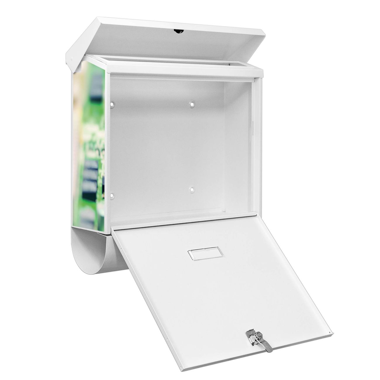 Der Briefkasten besteht aus Stahl, einem hochwertigen Material das äußerst unempfindlich gegenüber Witterungseinflüssen ist. Das Motiv besteht aus einer wetter- und UV-festen Folie, die Ihren Briefkasten zusätzlich vor Kratzern schützt. Der Postkasten ist 42,5cm hoch, 38cm breit und 11,5cm tief. Der Briefeinwurf ist 33,2cm x 3,1cm, Format DIN C4. Der Briefkasten wird mit Montagematerial und zwei Schlüsseln geliefert.