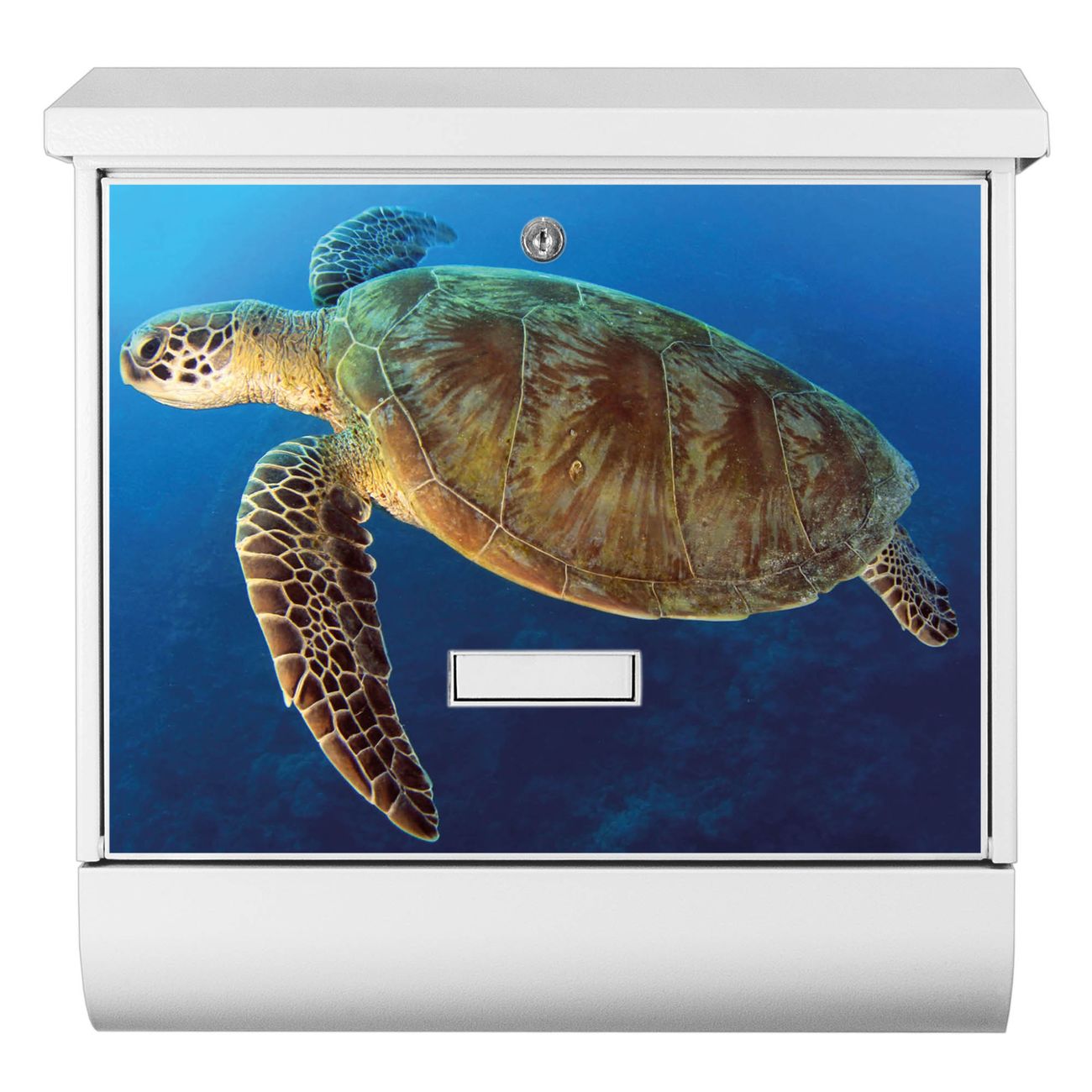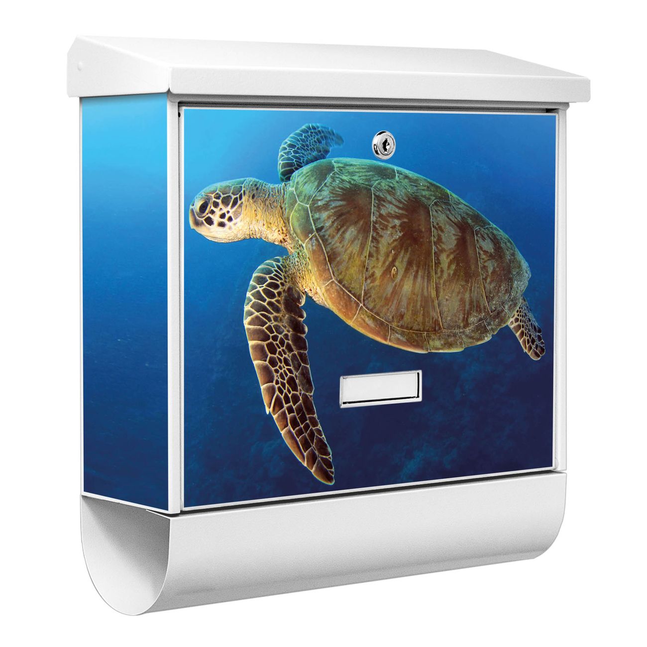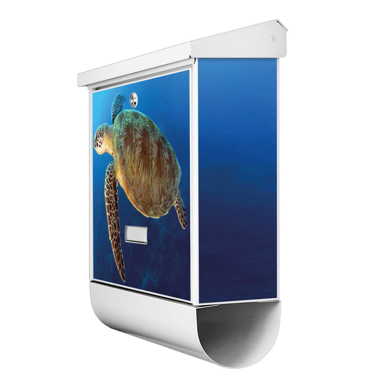 Der BURG-WÄCHTER Stahl Briefkasten mit Wasserschildkröte Motiv bietet Ihnen mit seinem Fassungsvermögen genügend Platz auch für große A4 Sendungen und Zeitschriften. Das integrierte Regendach schützt Ihre Post vor dem Eindringen von Regen.