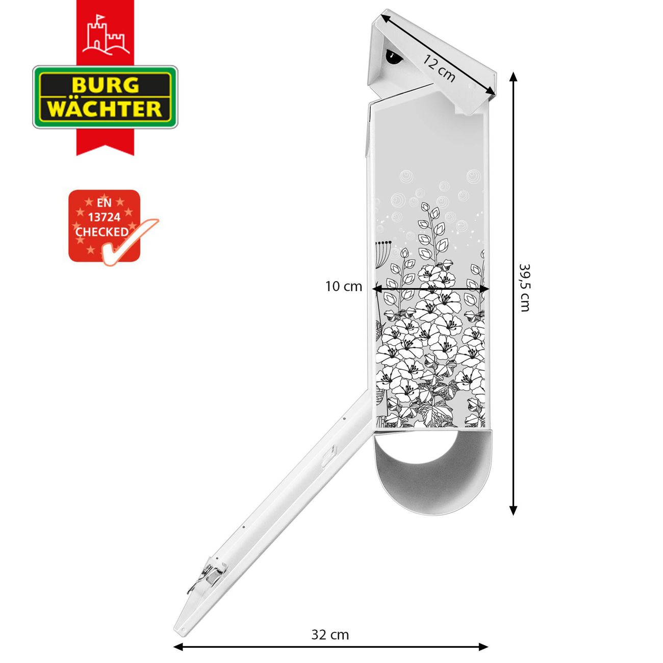 Der BURG-WÄCHTER Stahl Briefkasten mit Wegesrand Motiv bietet Ihnen mit seinem Fassungsvermögen genügend Platz auch für große A4 Sendungen und Zeitschriften. Das integrierte Regendach schützt Ihre Post vor dem Eindringen von Regen.