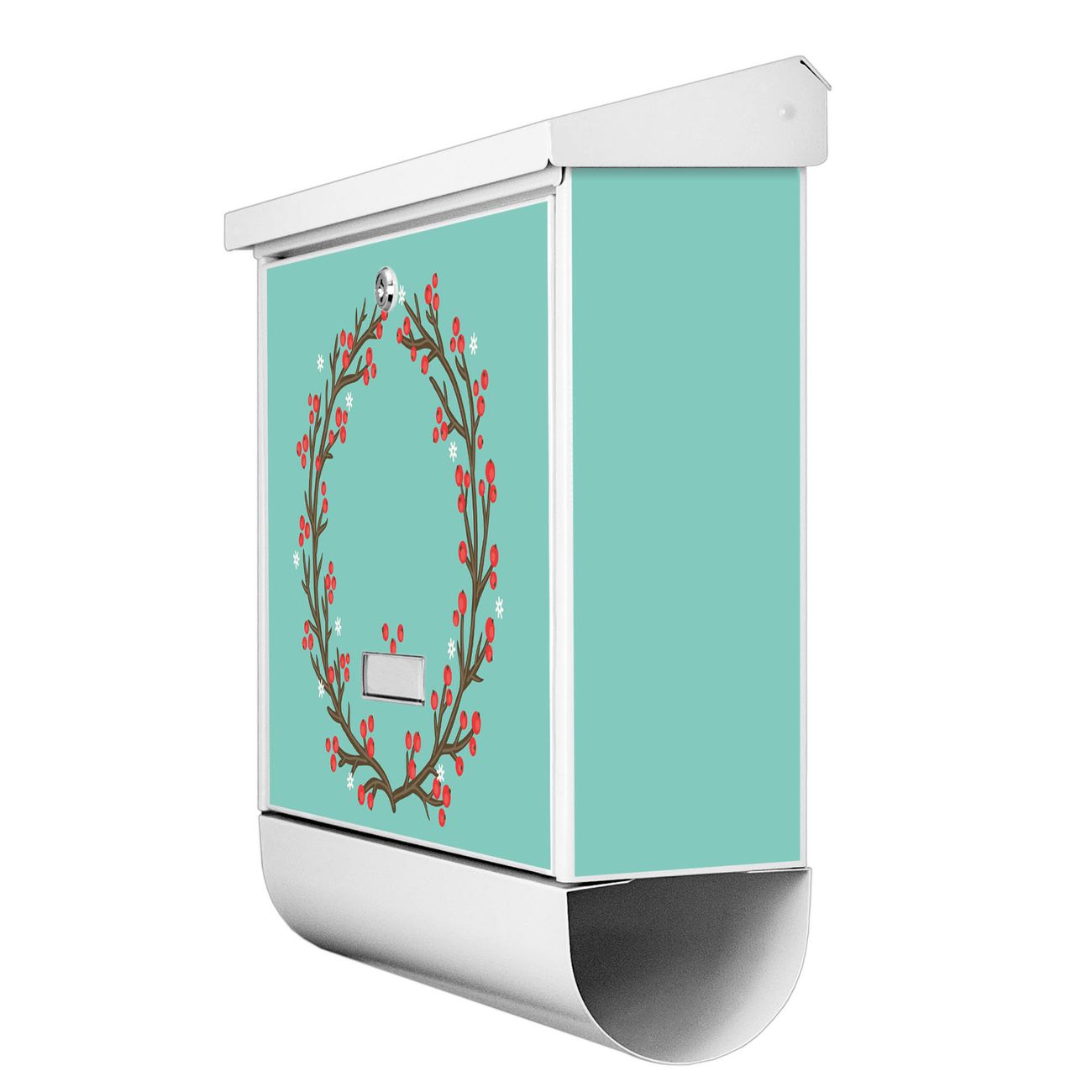 Der BURG-WÄCHTER Stahl Briefkasten mit Weihnachtsranke Motiv bietet Ihnen mit seinem Fassungsvermögen genügend Platz auch für große A4 Sendungen und Zeitschriften. Das integrierte Regendach schützt Ihre Post vor dem Eindringen von Regen.