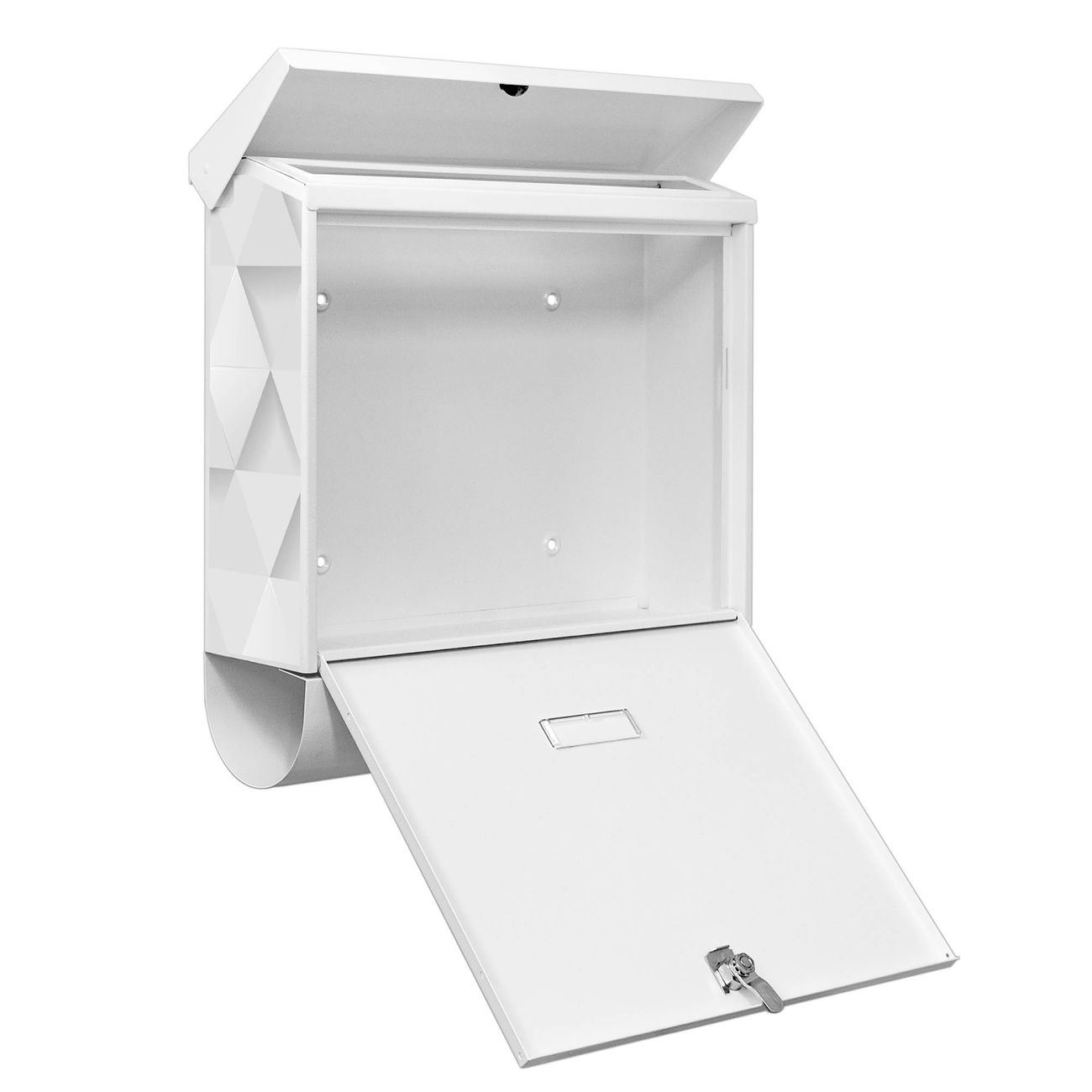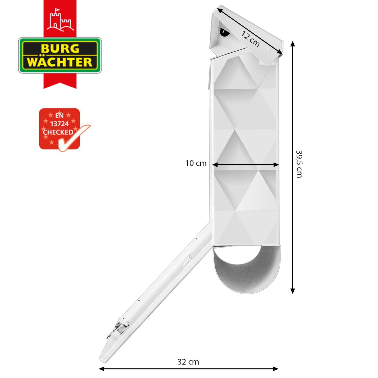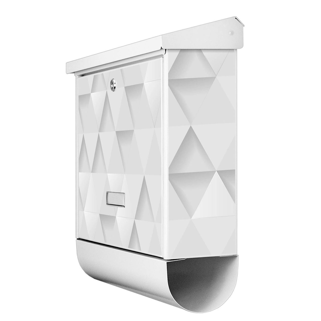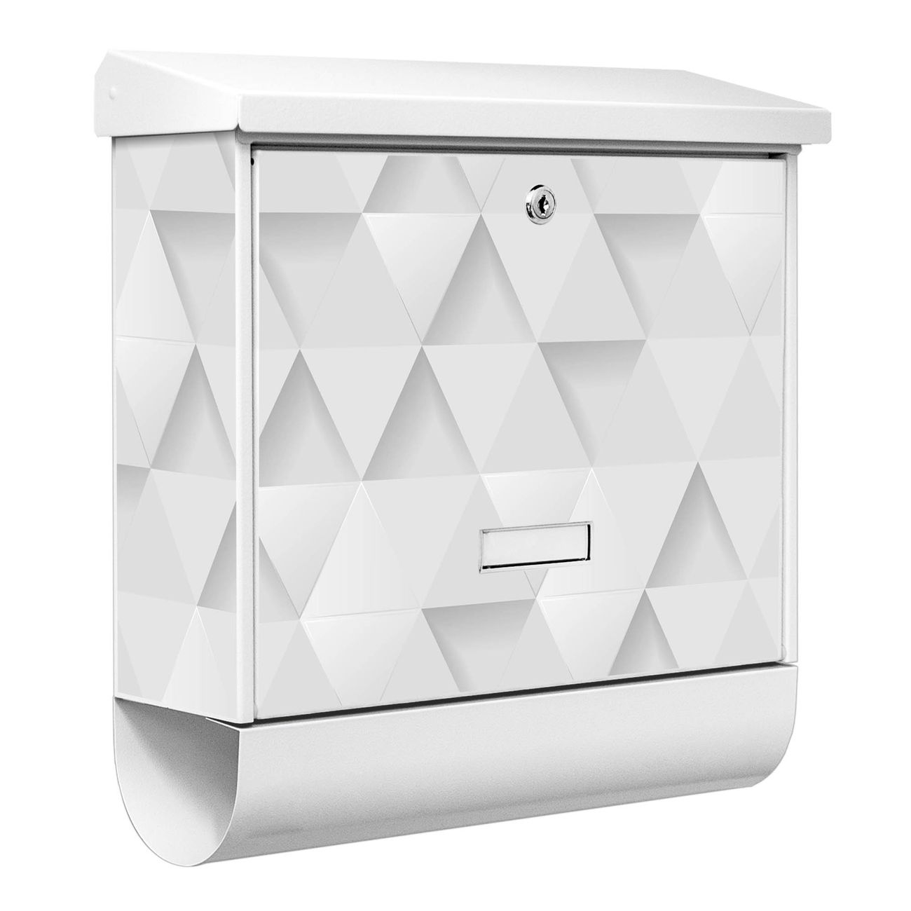 Der BURG-WÄCHTER Stahl Briefkasten mit Weisse Dreiecke Motiv bietet Ihnen mit seinem Fassungsvermögen genügend Platz auch für große A4 Sendungen und Zeitschriften. Das integrierte Regendach schützt Ihre Post vor dem Eindringen von Regen.
