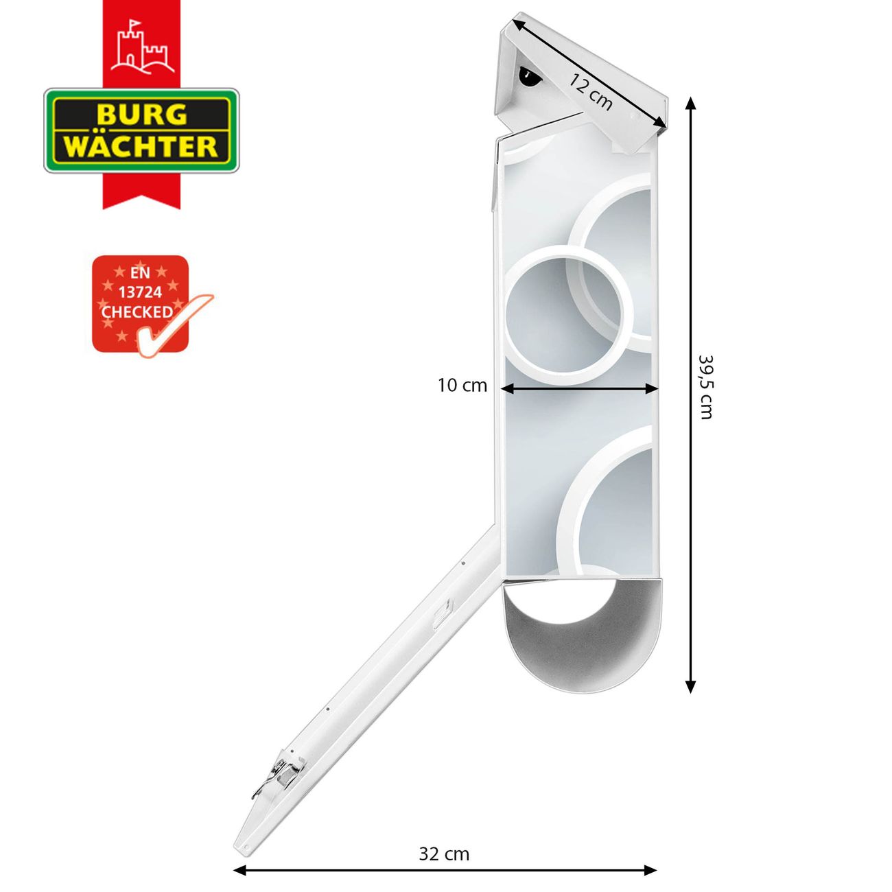 Der BURG-WÄCHTER Stahl Briefkasten mit Weiße Ringe Motiv bietet Ihnen mit seinem Fassungsvermögen genügend Platz auch für große A4 Sendungen und Zeitschriften. Das integrierte Regendach schützt Ihre Post vor dem Eindringen von Regen.