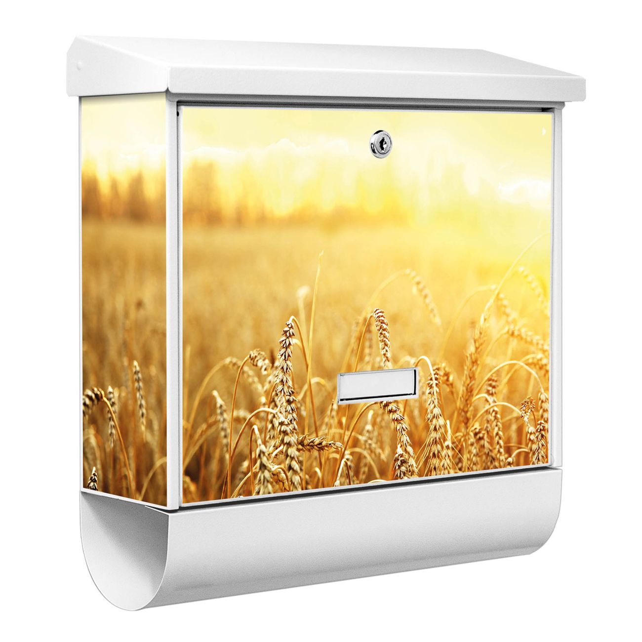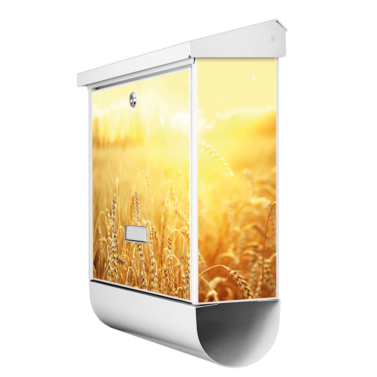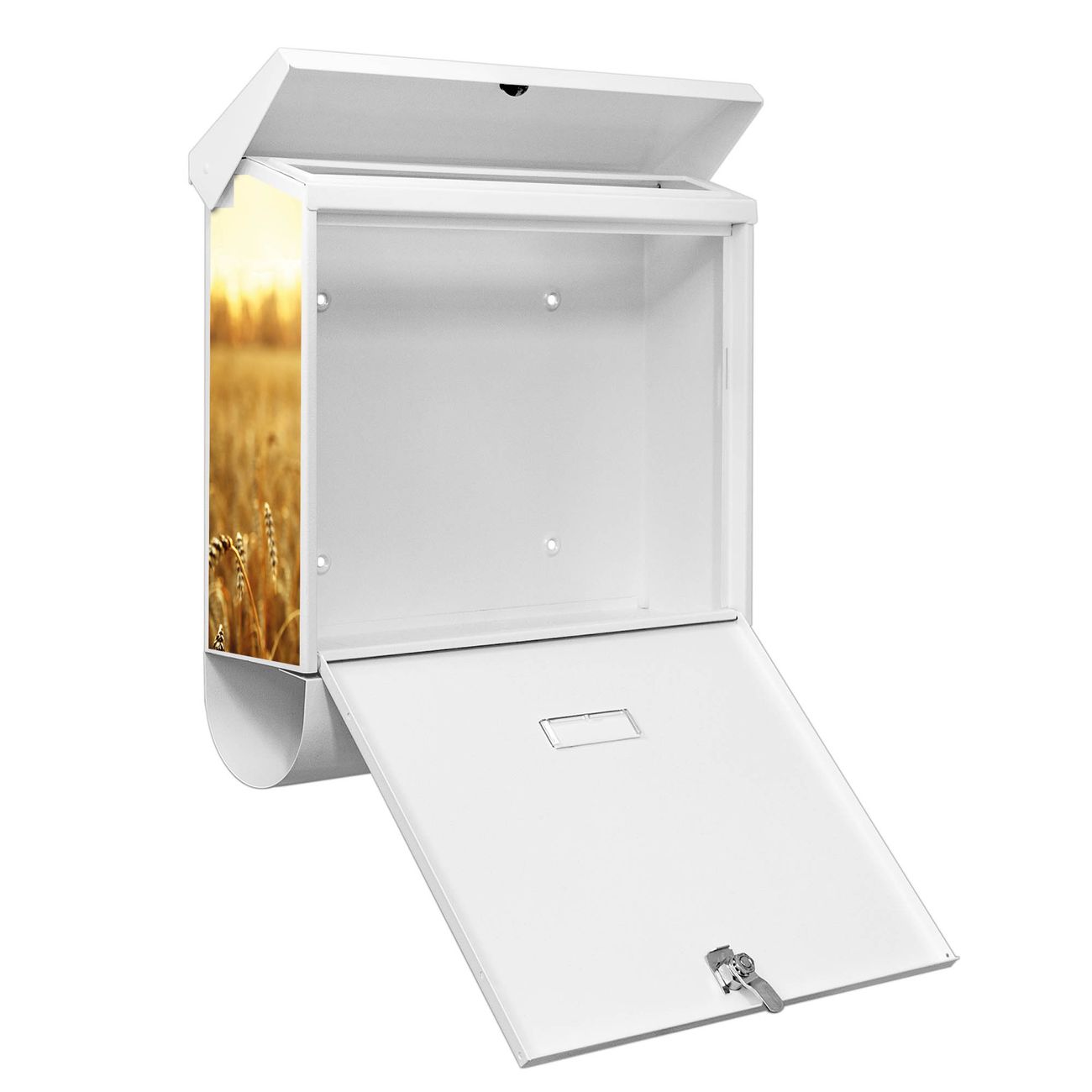 Der BURG-WÄCHTER Stahl Briefkasten mit Weizenfeld Motiv bietet Ihnen mit seinem Fassungsvermögen genügend Platz auch für große A4 Sendungen und Zeitschriften. Das integrierte Regendach schützt Ihre Post vor dem Eindringen von Regen.