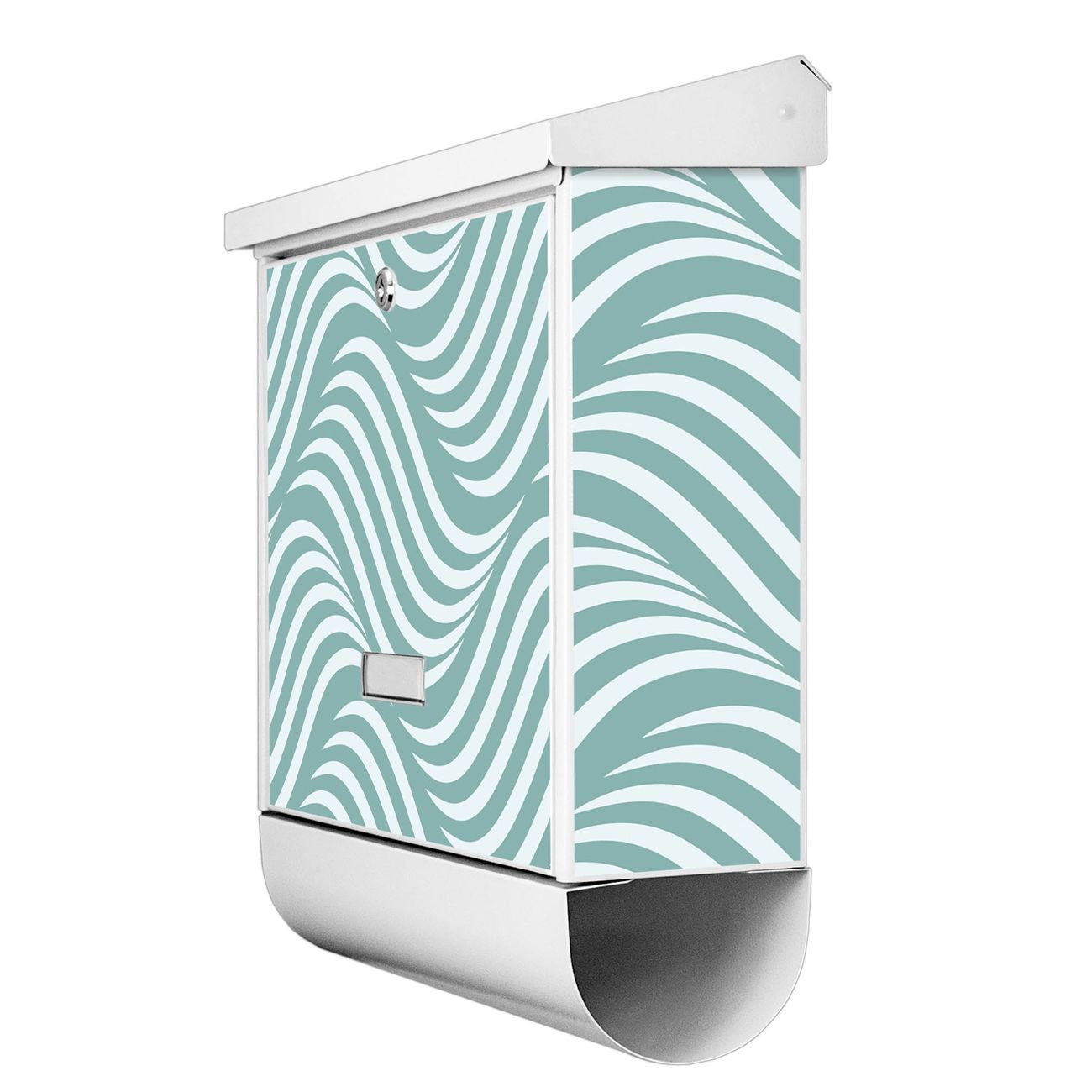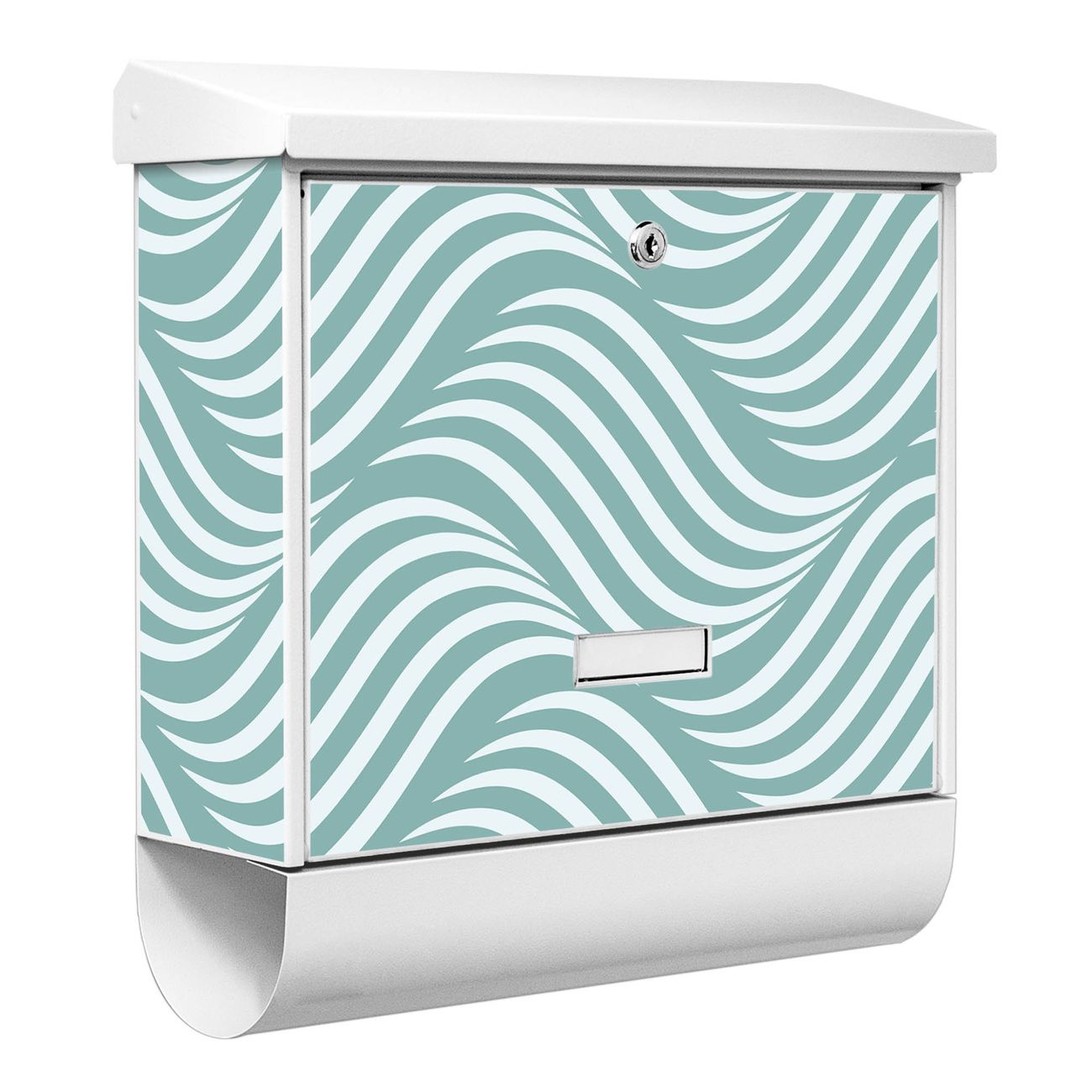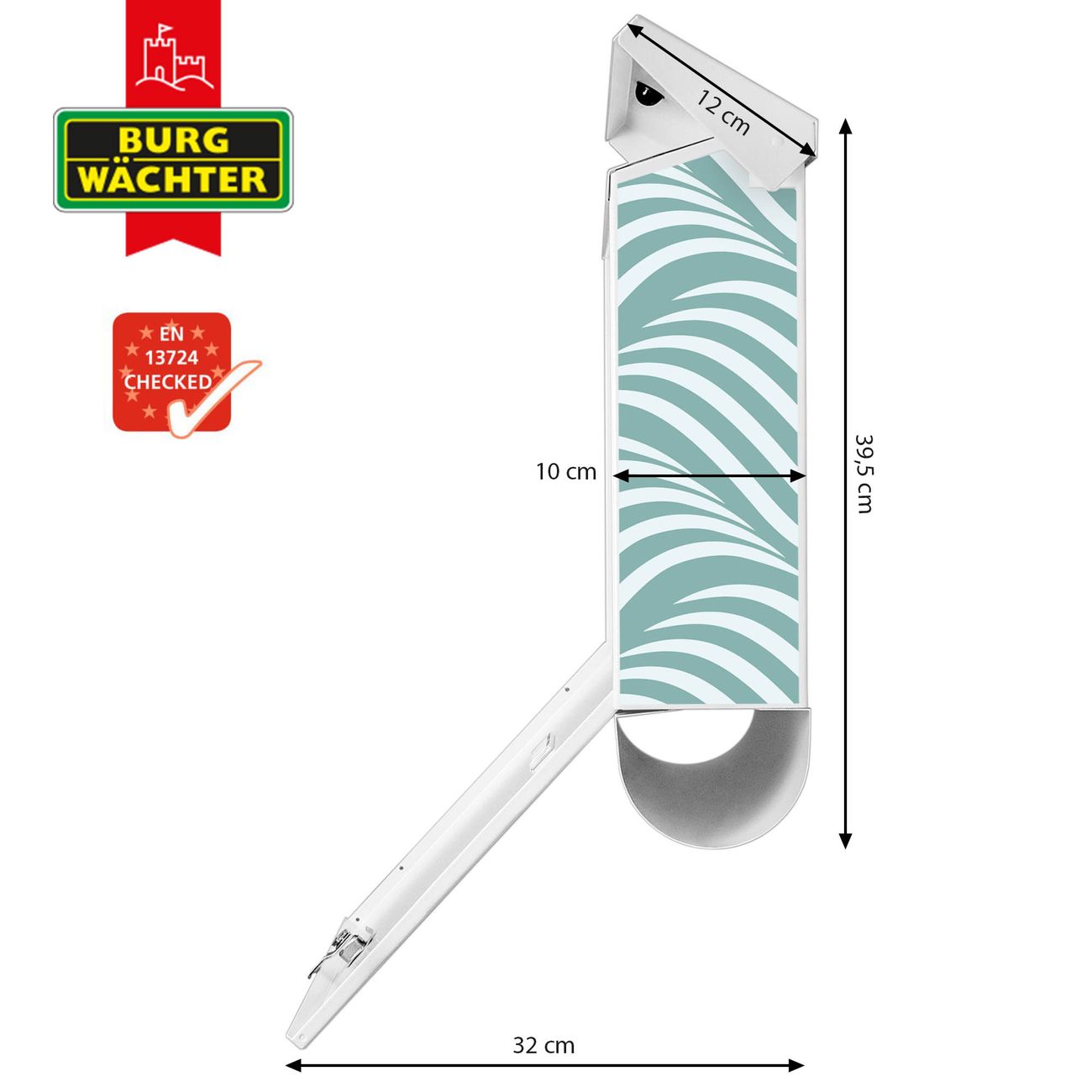 Der BURG-WÄCHTER Stahl Briefkasten mit Wellen Lindgrün Motiv bietet Ihnen mit seinem Fassungsvermögen genügend Platz auch für große A4 Sendungen und Zeitschriften. Das integrierte Regendach schützt Ihre Post vor dem Eindringen von Regen.