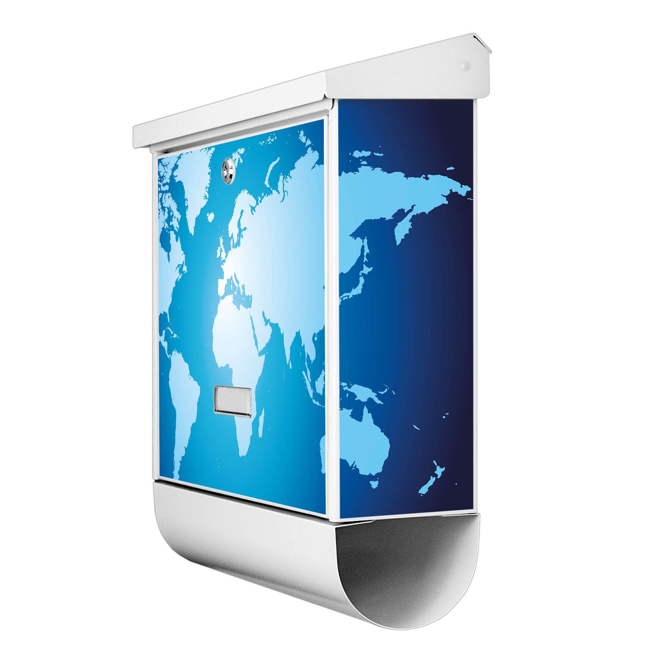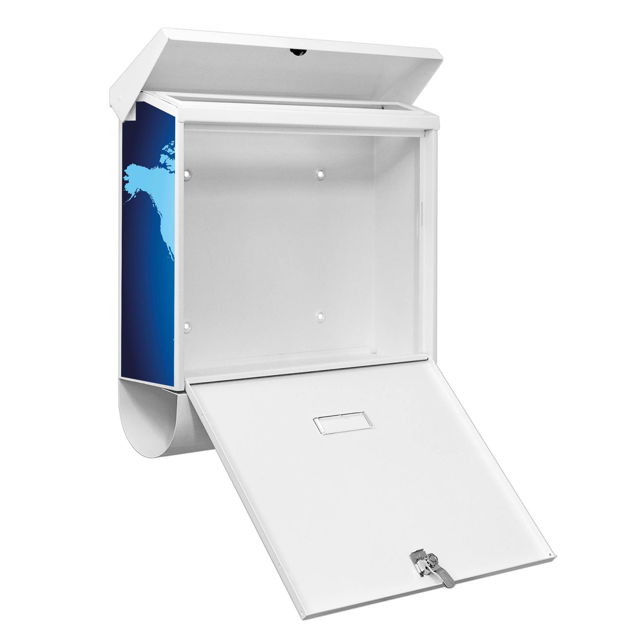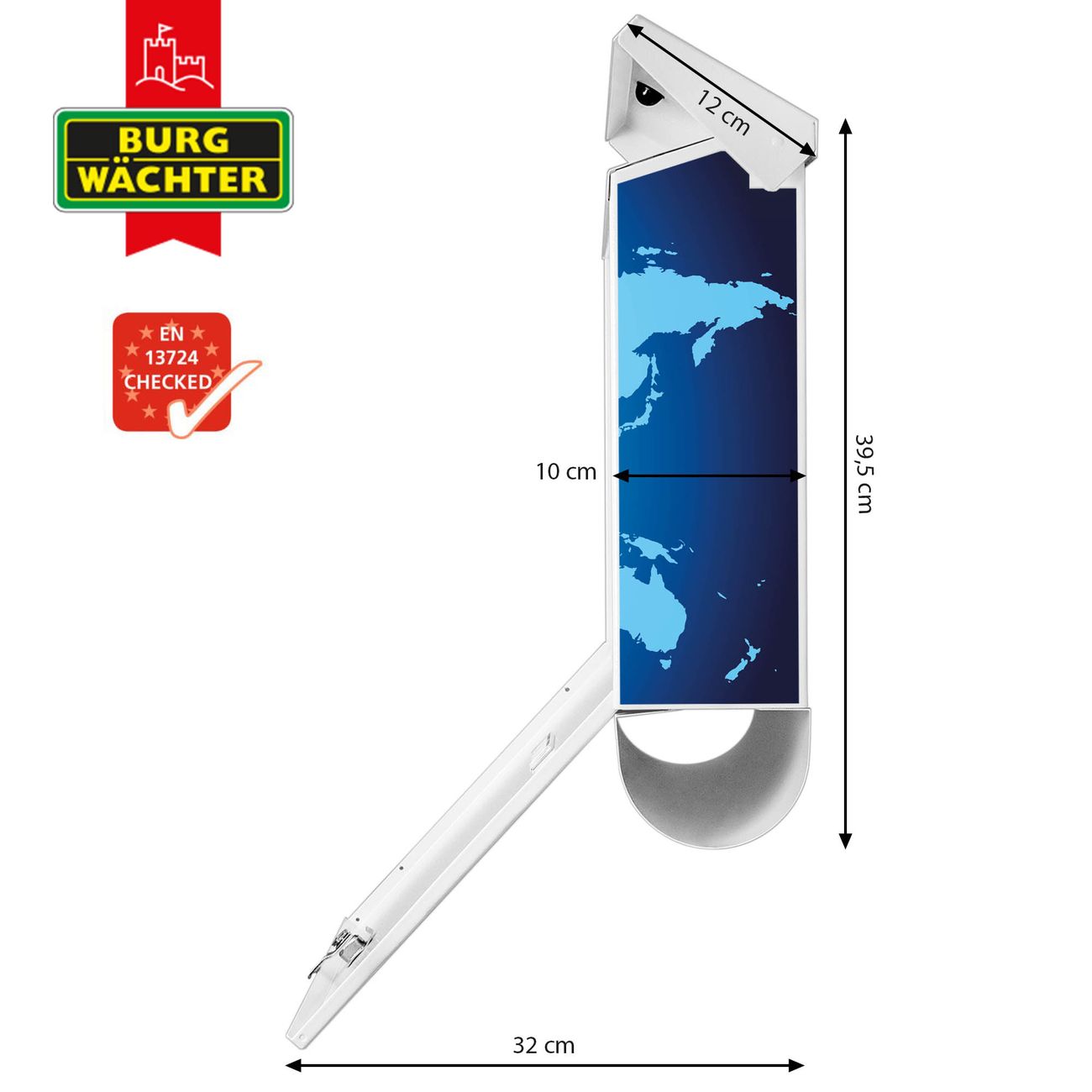 Der BURG-WÄCHTER Stahl Briefkasten mit Weltkarte Motiv bietet Ihnen mit seinem Fassungsvermögen genügend Platz auch für große A4 Sendungen und Zeitschriften. Das integrierte Regendach schützt Ihre Post vor dem Eindringen von Regen.
