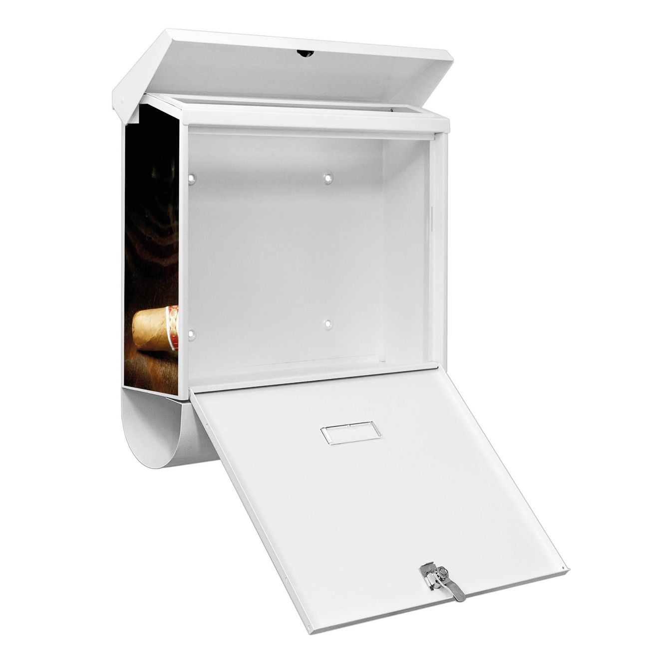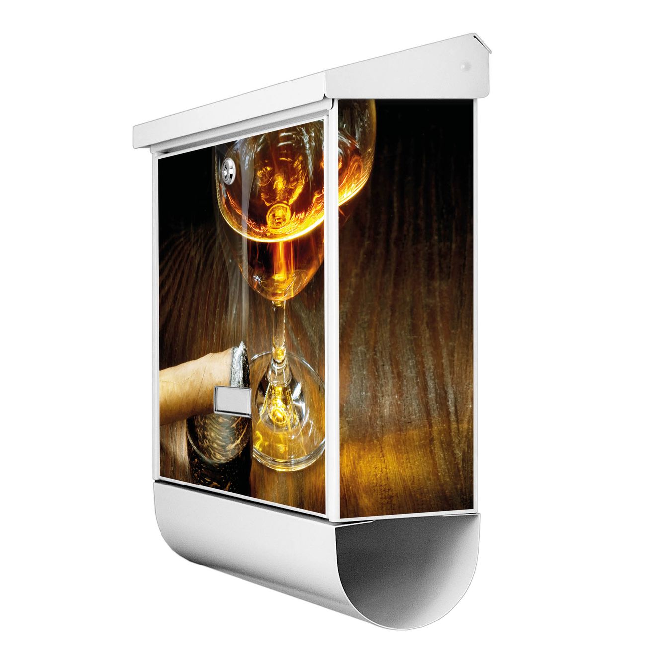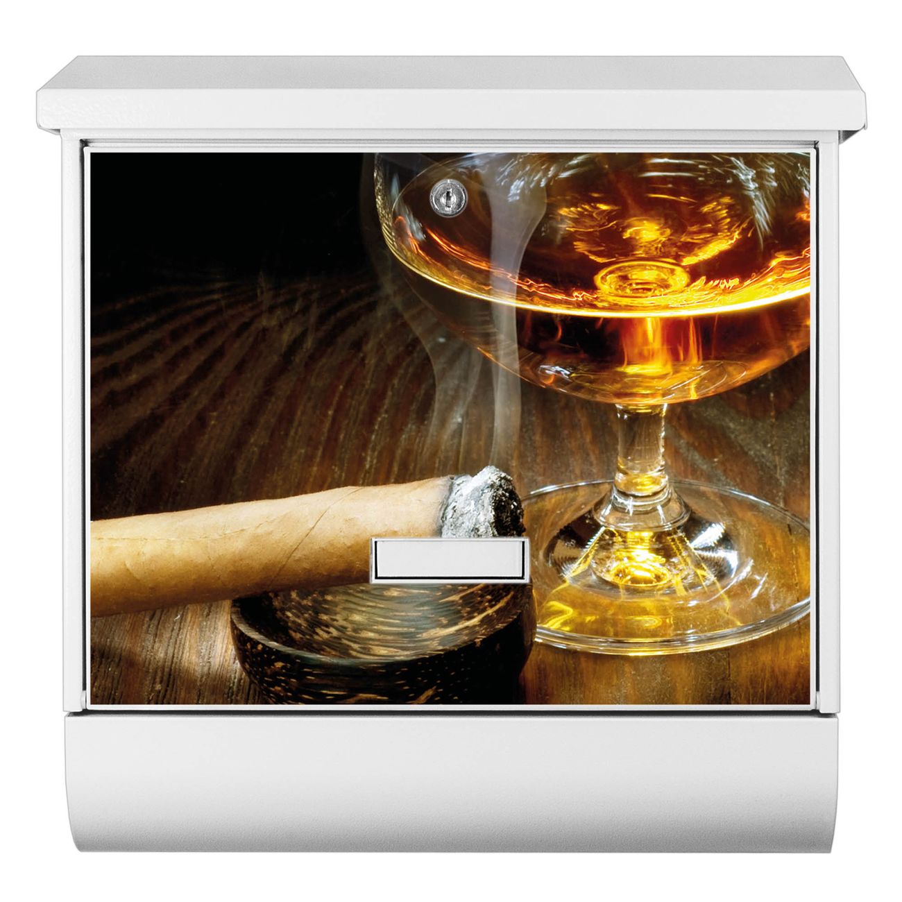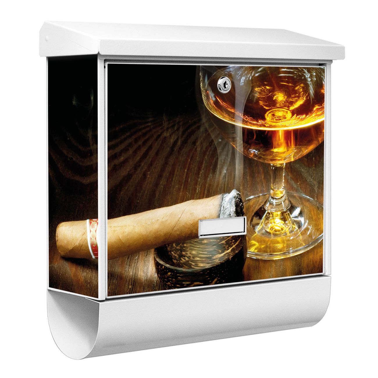 Der BURG-WÄCHTER Stahl Briefkasten mit Whiskey & Cigar Motiv bietet Ihnen mit seinem Fassungsvermögen genügend Platz auch für große A4 Sendungen und Zeitschriften. Das integrierte Regendach schützt Ihre Post vor dem Eindringen von Regen.