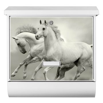 Der BURG-WÄCHTER Stahl Briefkasten mit Wilde Pferde SW Motiv bietet Ihnen mit seinem Fassungsvermögen genügend Platz auch für große A4 Sendungen und Zeitschriften. Das integrierte Regendach schützt Ihre Post vor dem Eindringen von Regen.