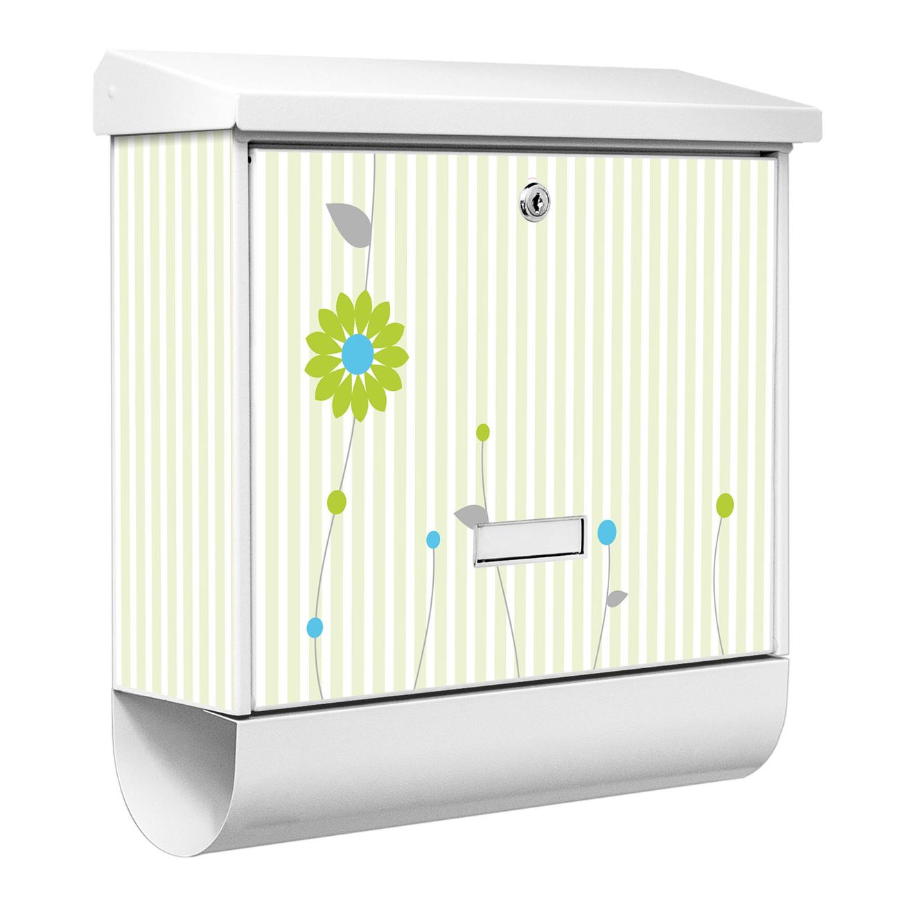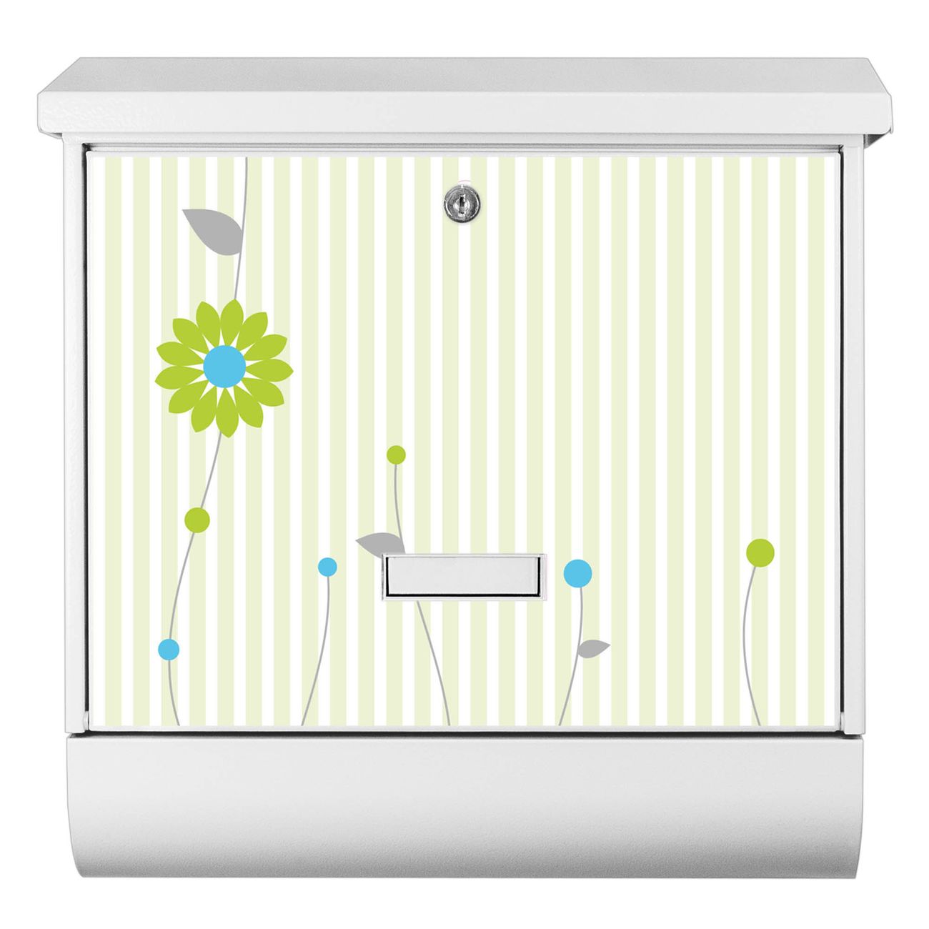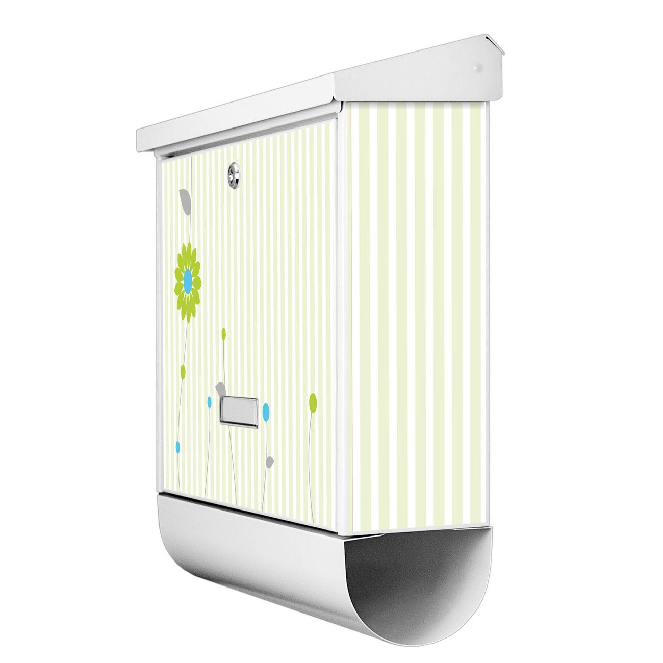 Der BURG-WÄCHTER Stahl Briefkasten mit Zarte Blumen Motiv bietet Ihnen mit seinem Fassungsvermögen genügend Platz auch für große A4 Sendungen und Zeitschriften. Das integrierte Regendach schützt Ihre Post vor dem Eindringen von Regen.