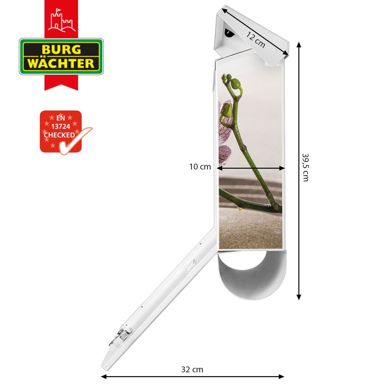 Der BURG-WÄCHTER Stahl Briefkasten mit Zen Relax Motiv bietet Ihnen mit seinem Fassungsvermögen genügend Platz auch für große A4 Sendungen und Zeitschriften. Das integrierte Regendach schützt Ihre Post vor dem Eindringen von Regen.