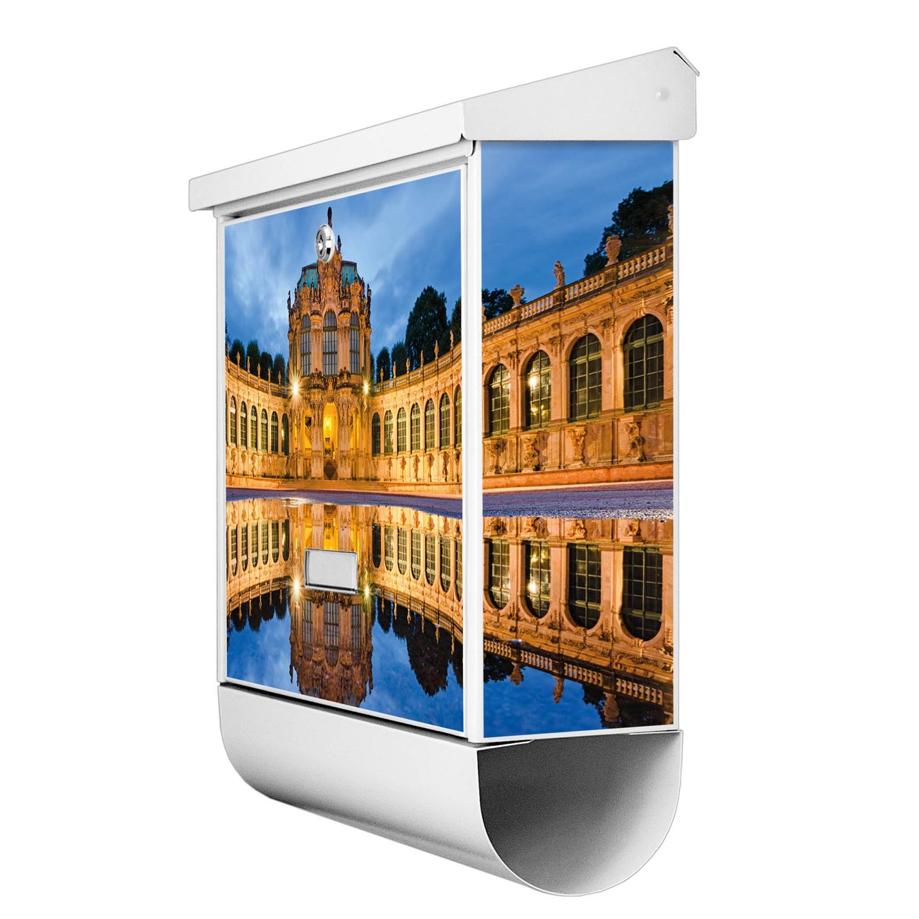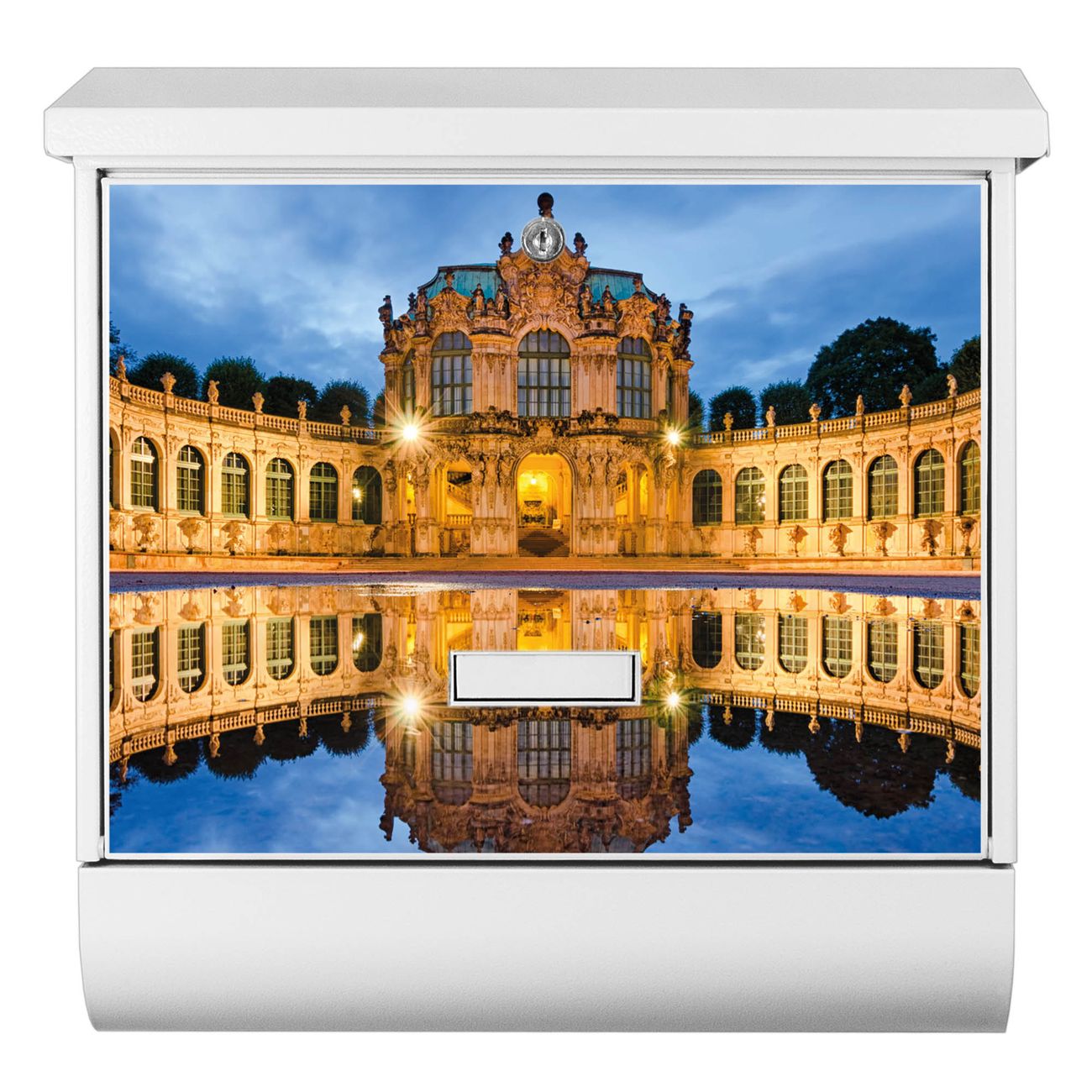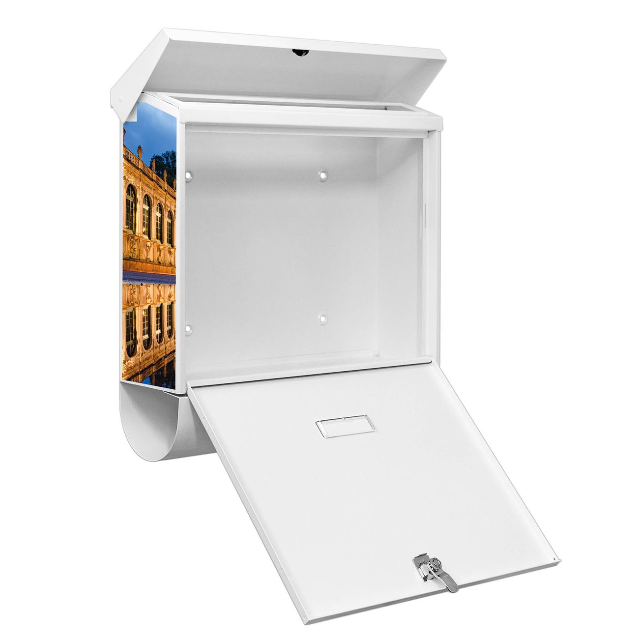 Der BURG-WÄCHTER Stahl Briefkasten mit Zwinger Dresden Motiv bietet Ihnen mit seinem Fassungsvermögen genügend Platz auch für große A4 Sendungen und Zeitschriften. Das integrierte Regendach schützt Ihre Post vor dem Eindringen von Regen.