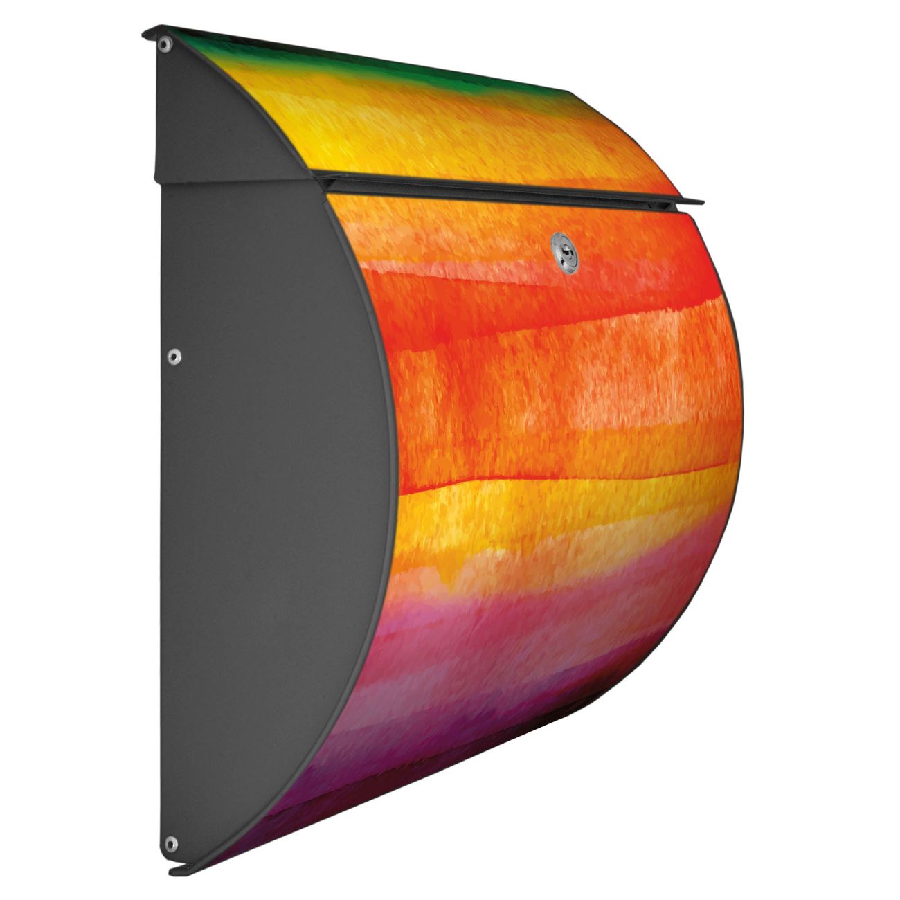 FUNKTION: DESIGN: Das Burg Wächter Modell Toscana mit Motiv Aquarell hat ein sehr ansprechendes und zeitloses Design und ist besonderes wetterfest. Heben Sie Sich von der tristen grauen Masse ab, ohne auf Funktionalität zu verzichten. Wir bieten Ihnen ebenfalls Namensschilder, bereits beschriftet oder frei zu beschriften, und verschiedene selbst gestaltete Bitte-Keine-Werbung-Aufkleber. DETAILS: Der Postkasten besteht aus vollflächig verzinktem Stahl welcher in Anthrazit oder Weiß lackiert wurde oder aus Edelstahl (je nach gewählter Variante). Das Motiv besteht aus einer wetter- und UV-festen Folie, die mit einem Schutzlaminat überzogen ist, durch die Ihren Briefkasten zusätzlich vor Kratzern geschützt ist und auf den Briefkasten kaschiert wurde. Sie erhalten zu Ihrem neuen Design Briefkasten 2 Schlüssel sowie das passende Montagematerial. BANJADO: Ihr Briefkasten wird von Burg Wächter in Deutschland gefertigt und in unserer kleinen Manufaktur von Hand veredelt. Die Motivfolie ist lösungsmittelfrei und schutzlaminiert, dies sorgt für einen langen Halt. Wir legen großen Wert auf die Verbindung von Funktionalität und Design. Sie erhalten besondere Handarbeit aus Sachsen und Made in Germany.
