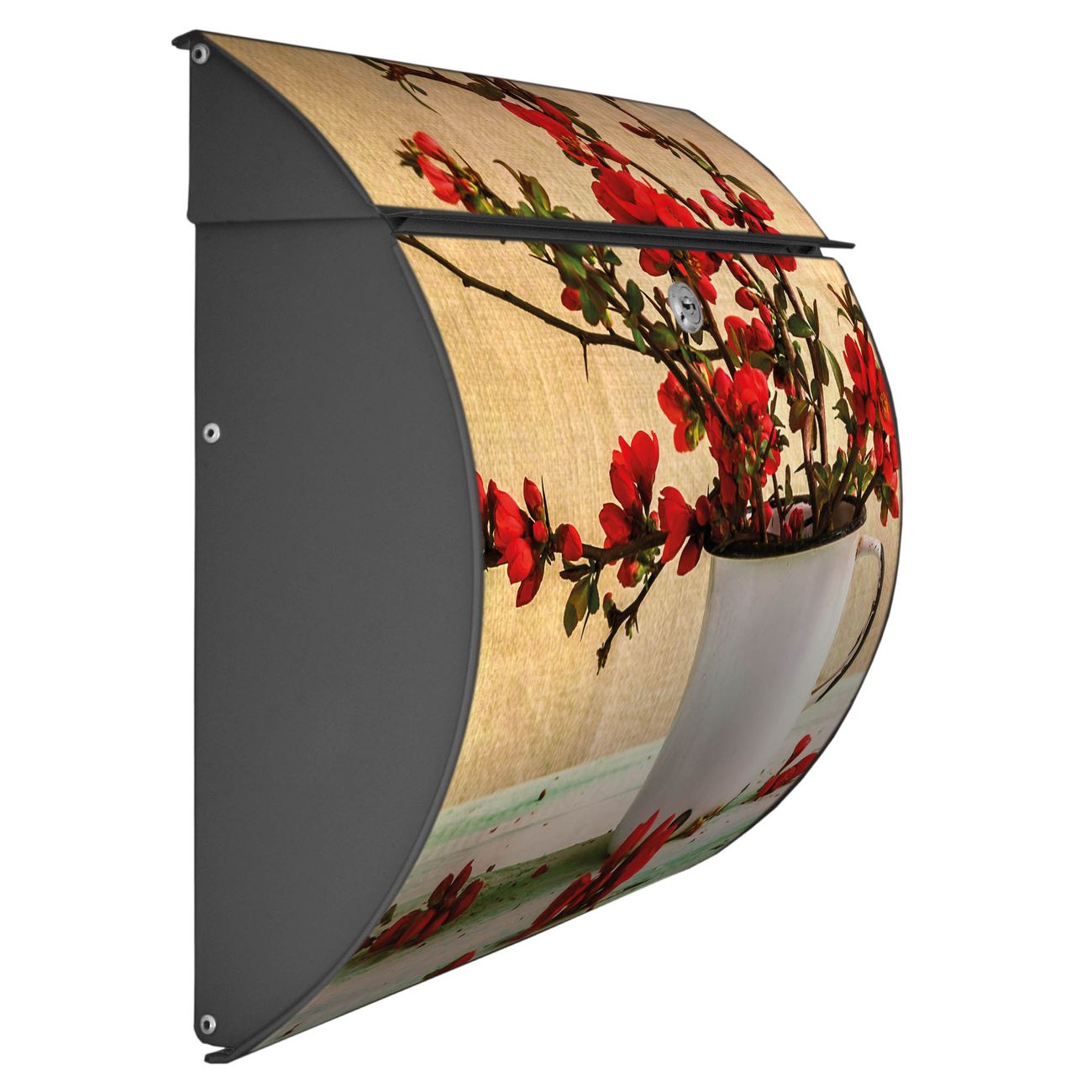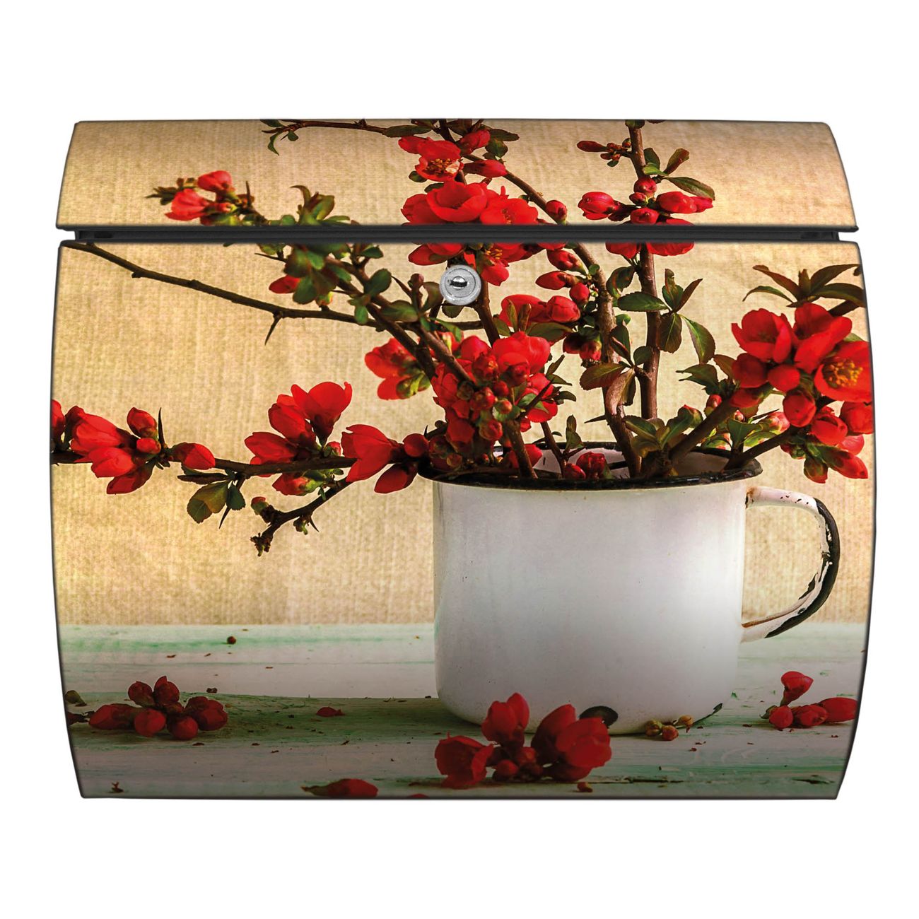 FUNKTION: DESIGN: Das Burg Wächter Modell Toscana mit Motiv Berberitzen hat ein sehr ansprechendes und zeitloses Design und ist besonderes wetterfest. Heben Sie Sich von der tristen grauen Masse ab, ohne auf Funktionalität zu verzichten. Wir bieten Ihnen ebenfalls Namensschilder, bereits beschriftet oder frei zu beschriften, und verschiedene selbst gestaltete Bitte-Keine-Werbung-Aufkleber. DETAILS: Der Postkasten besteht aus vollflächig verzinktem Stahl welcher in Anthrazit oder Weiß lackiert wurde oder aus Edelstahl (je nach gewählter Variante). Das Motiv besteht aus einer wetter- und UV-festen Folie, die mit einem Schutzlaminat überzogen ist, durch die Ihren Briefkasten zusätzlich vor Kratzern geschützt ist und auf den Briefkasten kaschiert wurde. Sie erhalten zu Ihrem neuen Design Briefkasten 2 Schlüssel sowie das passende Montagematerial. BANJADO: Ihr Briefkasten wird von Burg Wächter in Deutschland gefertigt und in unserer kleinen Manufaktur von Hand veredelt. Die Motivfolie ist lösungsmittelfrei und schutzlaminiert, dies sorgt für einen langen Halt. Wir legen großen Wert auf die Verbindung von Funktionalität und Design. Sie erhalten besondere Handarbeit aus Sachsen und Made in Germany.