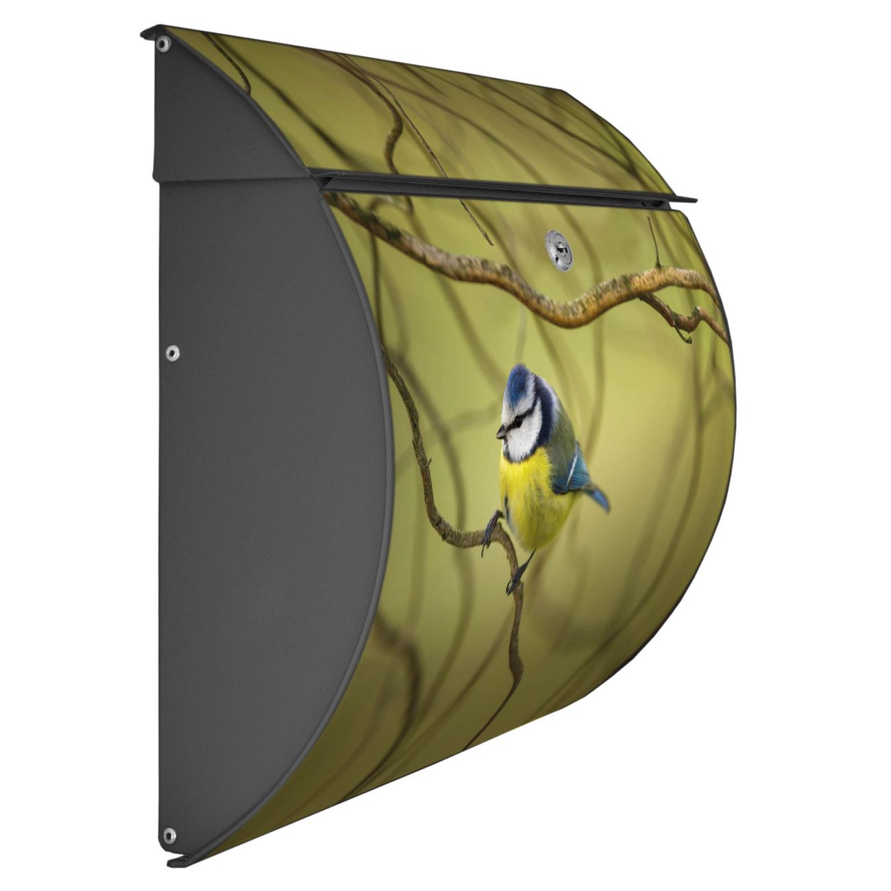 FUNKTION: DESIGN: Das Burg Wächter Modell Toscana mit Motiv Blaumeise im Baum hat ein sehr ansprechendes und zeitloses Design und ist besonderes wetterfest. Heben Sie Sich von der tristen grauen Masse ab, ohne auf Funktionalität zu verzichten. Wir bieten Ihnen ebenfalls Namensschilder, bereits beschriftet oder frei zu beschriften, und verschiedene selbst gestaltete Bitte-Keine-Werbung-Aufkleber. DETAILS: Der Postkasten besteht aus vollflächig verzinktem Stahl welcher in Anthrazit oder Weiß lackiert wurde oder aus Edelstahl (je nach gewählter Variante). Das Motiv besteht aus einer wetter- und UV-festen Folie, die mit einem Schutzlaminat überzogen ist, durch die Ihren Briefkasten zusätzlich vor Kratzern geschützt ist und auf den Briefkasten kaschiert wurde. Sie erhalten zu Ihrem neuen Design Briefkasten 2 Schlüssel sowie das passende Montagematerial. BANJADO: Ihr Briefkasten wird von Burg Wächter in Deutschland gefertigt und in unserer kleinen Manufaktur von Hand veredelt. Die Motivfolie ist lösungsmittelfrei und schutzlaminiert, dies sorgt für einen langen Halt. Wir legen großen Wert auf die Verbindung von Funktionalität und Design. Sie erhalten besondere Handarbeit aus Sachsen und Made in Germany.