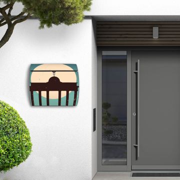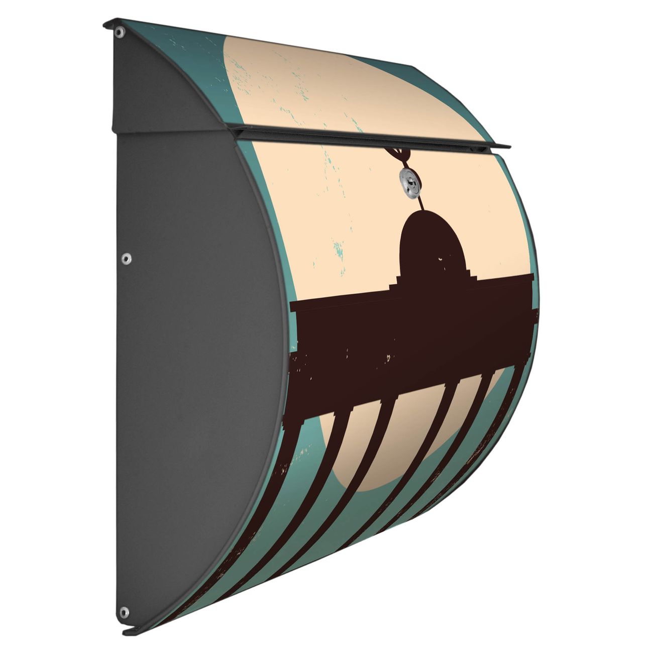 FUNKTION: DESIGN: Das Burg Wächter Modell Toscana mit Motiv City Poster Berlin hat ein sehr ansprechendes und zeitloses Design und ist besonderes wetterfest. Heben Sie Sich von der tristen grauen Masse ab, ohne auf Funktionalität zu verzichten. Wir bieten Ihnen ebenfalls Namensschilder, bereits beschriftet oder frei zu beschriften, und verschiedene selbst gestaltete Bitte-Keine-Werbung-Aufkleber. DETAILS: Der Postkasten besteht aus vollflächig verzinktem Stahl welcher in Anthrazit oder Weiß lackiert wurde oder aus Edelstahl (je nach gewählter Variante). Das Motiv besteht aus einer wetter- und UV-festen Folie, die mit einem Schutzlaminat überzogen ist, durch die Ihren Briefkasten zusätzlich vor Kratzern geschützt ist und auf den Briefkasten kaschiert wurde. Sie erhalten zu Ihrem neuen Design Briefkasten 2 Schlüssel sowie das passende Montagematerial. BANJADO: Ihr Briefkasten wird von Burg Wächter in Deutschland gefertigt und in unserer kleinen Manufaktur von Hand veredelt. Die Motivfolie ist lösungsmittelfrei und schutzlaminiert, dies sorgt für einen langen Halt. Wir legen großen Wert auf die Verbindung von Funktionalität und Design. Sie erhalten besondere Handarbeit aus Sachsen und Made in Germany.