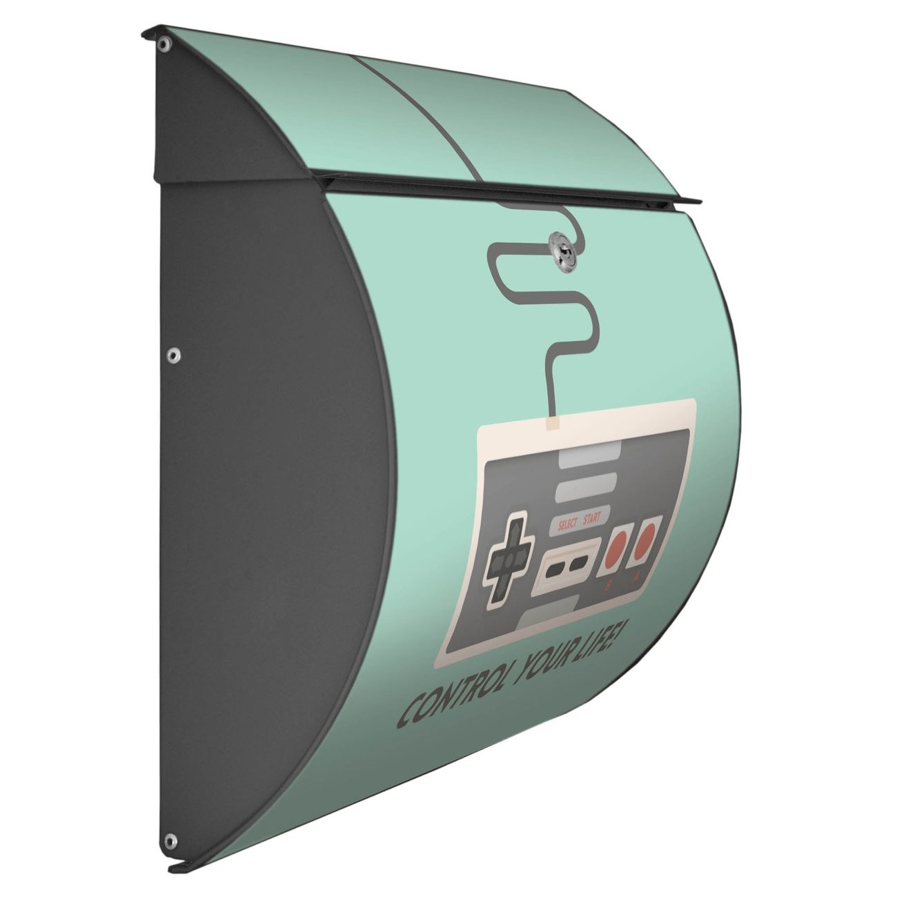 Der geschwungene Burg Wächter Briefkasten Toscana mit Motiv Control bietet Ihnen mit seinem großen Fassungsvermögen genügend Platz auch für große A4 Sendungen. Auf Wunsch können Sie bei uns den passenden Standfuß bestellen und so aus dem Wandbriefkasten einen Standbriefkasten machen. Der integrierte Öffnungsstopp ermöglicht eine einfache Handhabung beim Entnehmen der Post.