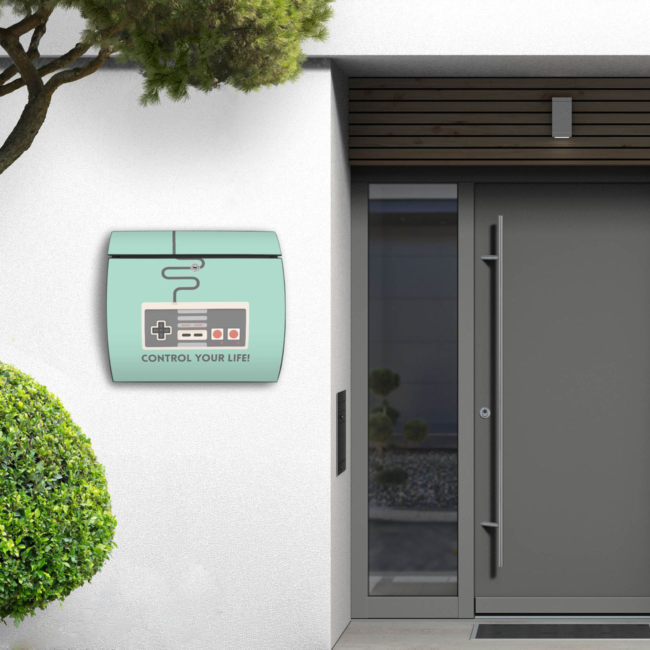 FUNKTION: DESIGN: Das Burg Wächter Modell Toscana mit Motiv Control hat ein sehr ansprechendes und zeitloses Design und ist besonderes wetterfest. Heben Sie Sich von der tristen grauen Masse ab, ohne auf Funktionalität zu verzichten. Wir bieten Ihnen ebenfalls Namensschilder, bereits beschriftet oder frei zu beschriften, und verschiedene selbst gestaltete Bitte-Keine-Werbung-Aufkleber. DETAILS: Der Postkasten besteht aus vollflächig verzinktem Stahl welcher in Anthrazit oder Weiß lackiert wurde oder aus Edelstahl (je nach gewählter Variante). Das Motiv besteht aus einer wetter- und UV-festen Folie, die mit einem Schutzlaminat überzogen ist, durch die Ihren Briefkasten zusätzlich vor Kratzern geschützt ist und auf den Briefkasten kaschiert wurde. Sie erhalten zu Ihrem neuen Design Briefkasten 2 Schlüssel sowie das passende Montagematerial. BANJADO: Ihr Briefkasten wird von Burg Wächter in Deutschland gefertigt und in unserer kleinen Manufaktur von Hand veredelt. Die Motivfolie ist lösungsmittelfrei und schutzlaminiert, dies sorgt für einen langen Halt. Wir legen großen Wert auf die Verbindung von Funktionalität und Design. Sie erhalten besondere Handarbeit aus Sachsen und Made in Germany.