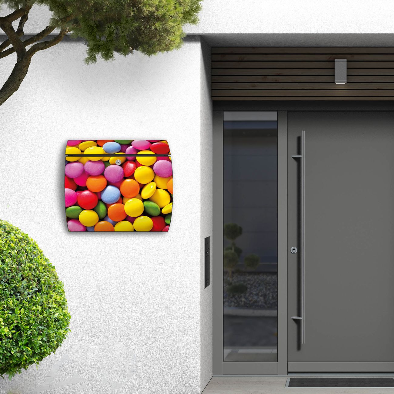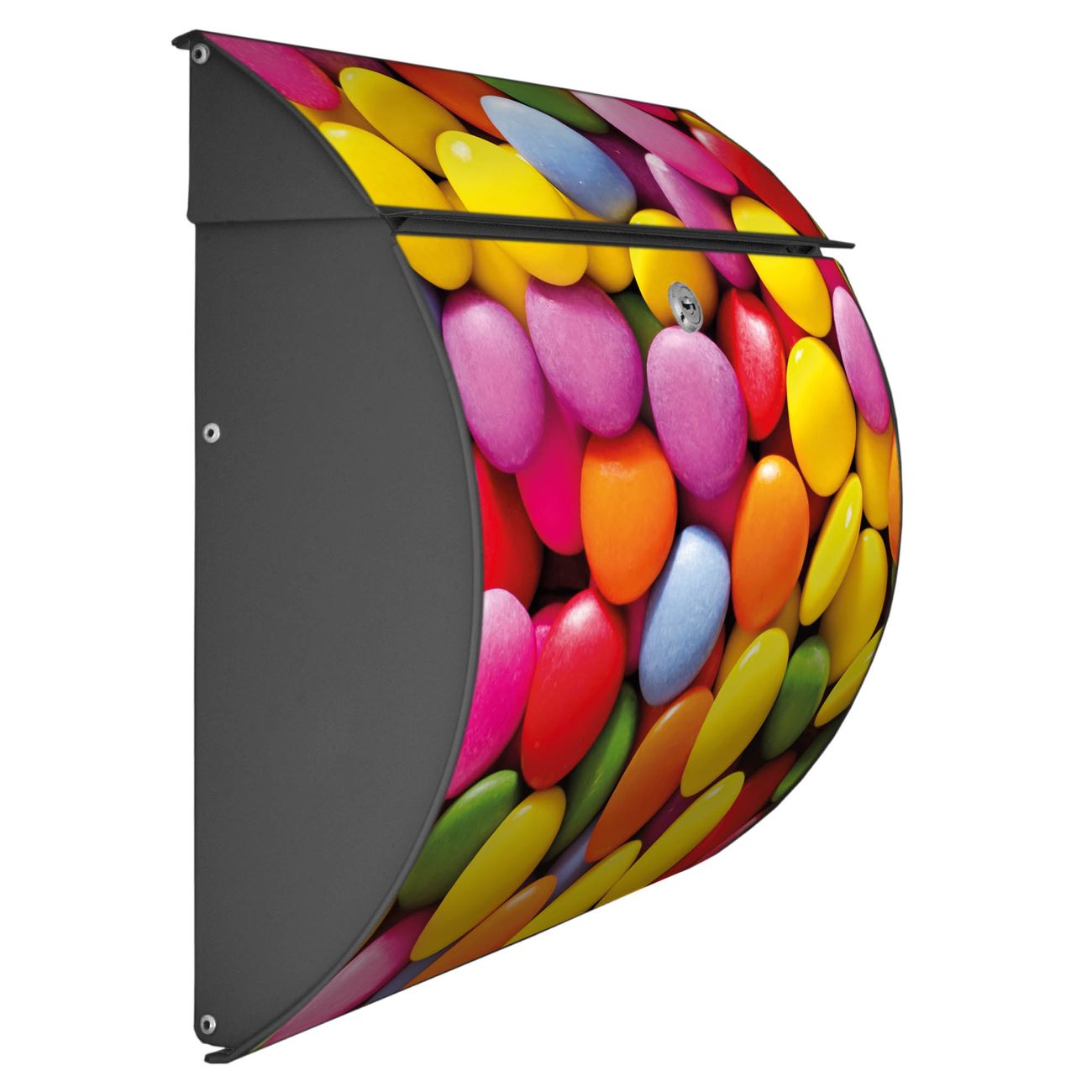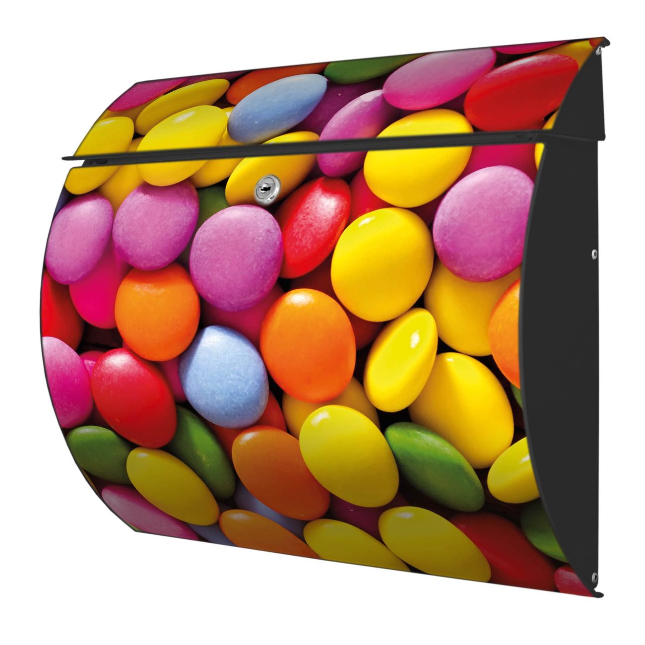 FUNKTION: DESIGN: Das Burg Wächter Modell Toscana mit Motiv Dragees hat ein sehr ansprechendes und zeitloses Design und ist besonderes wetterfest. Heben Sie Sich von der tristen grauen Masse ab, ohne auf Funktionalität zu verzichten. Wir bieten Ihnen ebenfalls Namensschilder, bereits beschriftet oder frei zu beschriften, und verschiedene selbst gestaltete Bitte-Keine-Werbung-Aufkleber. DETAILS: Der Postkasten besteht aus vollflächig verzinktem Stahl welcher in Anthrazit oder Weiß lackiert wurde oder aus Edelstahl (je nach gewählter Variante). Das Motiv besteht aus einer wetter- und UV-festen Folie, die mit einem Schutzlaminat überzogen ist, durch die Ihren Briefkasten zusätzlich vor Kratzern geschützt ist und auf den Briefkasten kaschiert wurde. Sie erhalten zu Ihrem neuen Design Briefkasten 2 Schlüssel sowie das passende Montagematerial. BANJADO: Ihr Briefkasten wird von Burg Wächter in Deutschland gefertigt und in unserer kleinen Manufaktur von Hand veredelt. Die Motivfolie ist lösungsmittelfrei und schutzlaminiert, dies sorgt für einen langen Halt. Wir legen großen Wert auf die Verbindung von Funktionalität und Design. Sie erhalten besondere Handarbeit aus Sachsen und Made in Germany.