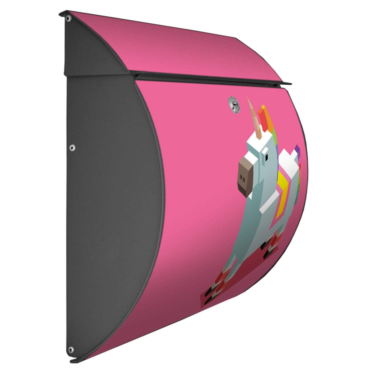 FUNKTION: DESIGN: Das Burg Wächter Modell Toscana mit Motiv Einhorn Block hat ein sehr ansprechendes und zeitloses Design und ist besonderes wetterfest. Heben Sie Sich von der tristen grauen Masse ab, ohne auf Funktionalität zu verzichten. Wir bieten Ihnen ebenfalls Namensschilder, bereits beschriftet oder frei zu beschriften, und verschiedene selbst gestaltete Bitte-Keine-Werbung-Aufkleber. DETAILS: Der Postkasten besteht aus vollflächig verzinktem Stahl welcher in Anthrazit oder Weiß lackiert wurde oder aus Edelstahl (je nach gewählter Variante). Das Motiv besteht aus einer wetter- und UV-festen Folie, die mit einem Schutzlaminat überzogen ist, durch die Ihren Briefkasten zusätzlich vor Kratzern geschützt ist und auf den Briefkasten kaschiert wurde. Sie erhalten zu Ihrem neuen Design Briefkasten 2 Schlüssel sowie das passende Montagematerial. BANJADO: Ihr Briefkasten wird von Burg Wächter in Deutschland gefertigt und in unserer kleinen Manufaktur von Hand veredelt. Die Motivfolie ist lösungsmittelfrei und schutzlaminiert, dies sorgt für einen langen Halt. Wir legen großen Wert auf die Verbindung von Funktionalität und Design. Sie erhalten besondere Handarbeit aus Sachsen und Made in Germany.