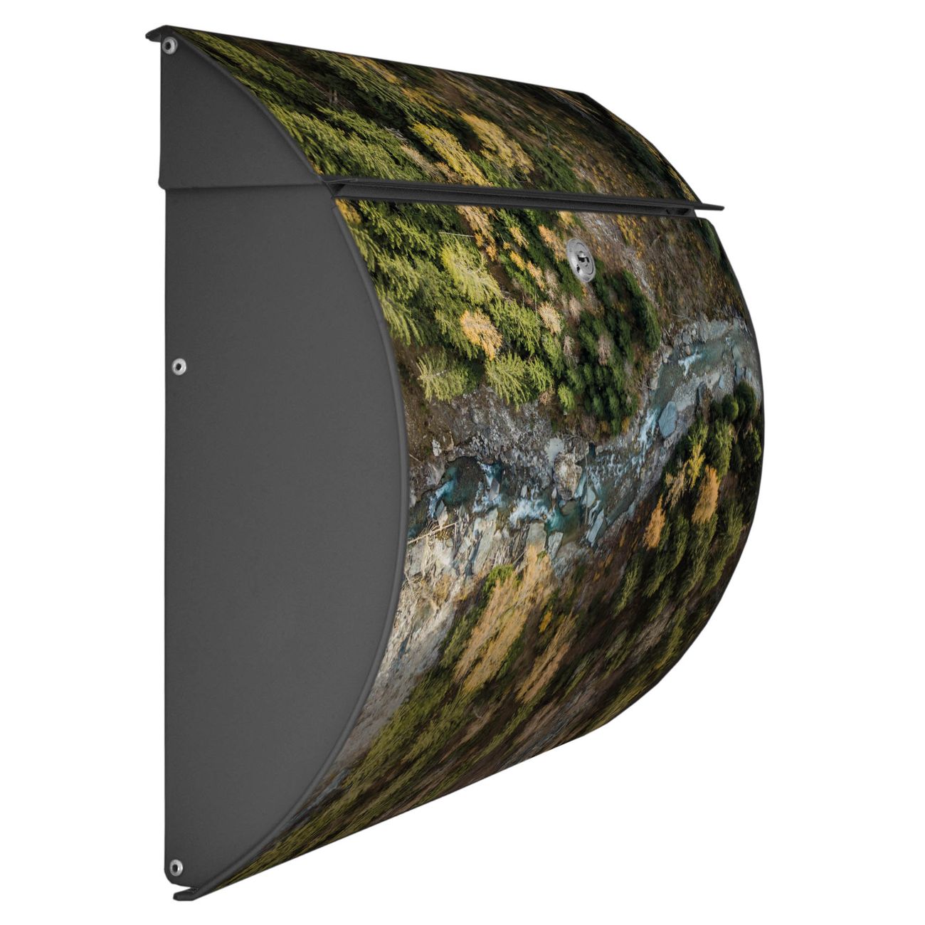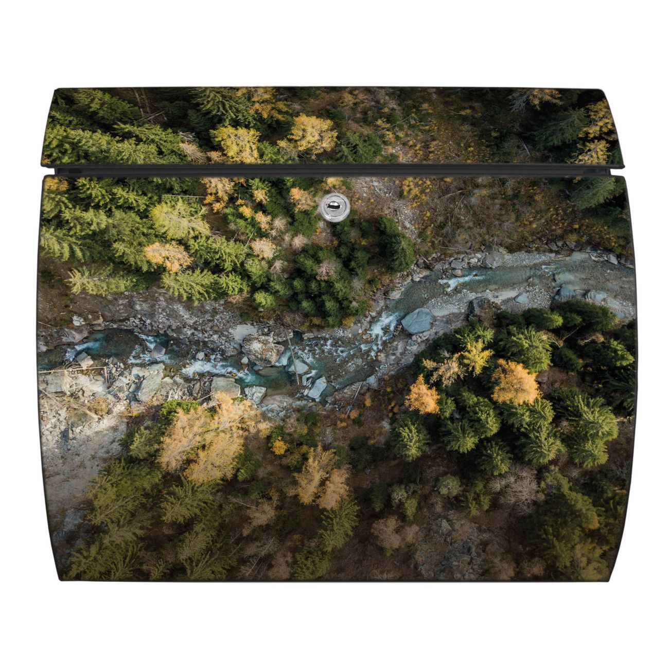 FUNKTION: DESIGN: Das Burg Wächter Modell Toscana mit Motiv Fluss im Tal 2 hat ein sehr ansprechendes und zeitloses Design und ist besonderes wetterfest. Heben Sie Sich von der tristen grauen Masse ab, ohne auf Funktionalität zu verzichten. Wir bieten Ihnen ebenfalls Namensschilder, bereits beschriftet oder frei zu beschriften, und verschiedene selbst gestaltete Bitte-Keine-Werbung-Aufkleber. DETAILS: Der Postkasten besteht aus vollflächig verzinktem Stahl welcher in Anthrazit oder Weiß lackiert wurde oder aus Edelstahl (je nach gewählter Variante). Das Motiv besteht aus einer wetter- und UV-festen Folie, die mit einem Schutzlaminat überzogen ist, durch die Ihren Briefkasten zusätzlich vor Kratzern geschützt ist und auf den Briefkasten kaschiert wurde. Sie erhalten zu Ihrem neuen Design Briefkasten 2 Schlüssel sowie das passende Montagematerial. BANJADO: Ihr Briefkasten wird von Burg Wächter in Deutschland gefertigt und in unserer kleinen Manufaktur von Hand veredelt. Die Motivfolie ist lösungsmittelfrei und schutzlaminiert, dies sorgt für einen langen Halt. Wir legen großen Wert auf die Verbindung von Funktionalität und Design. Sie erhalten besondere Handarbeit aus Sachsen und Made in Germany.