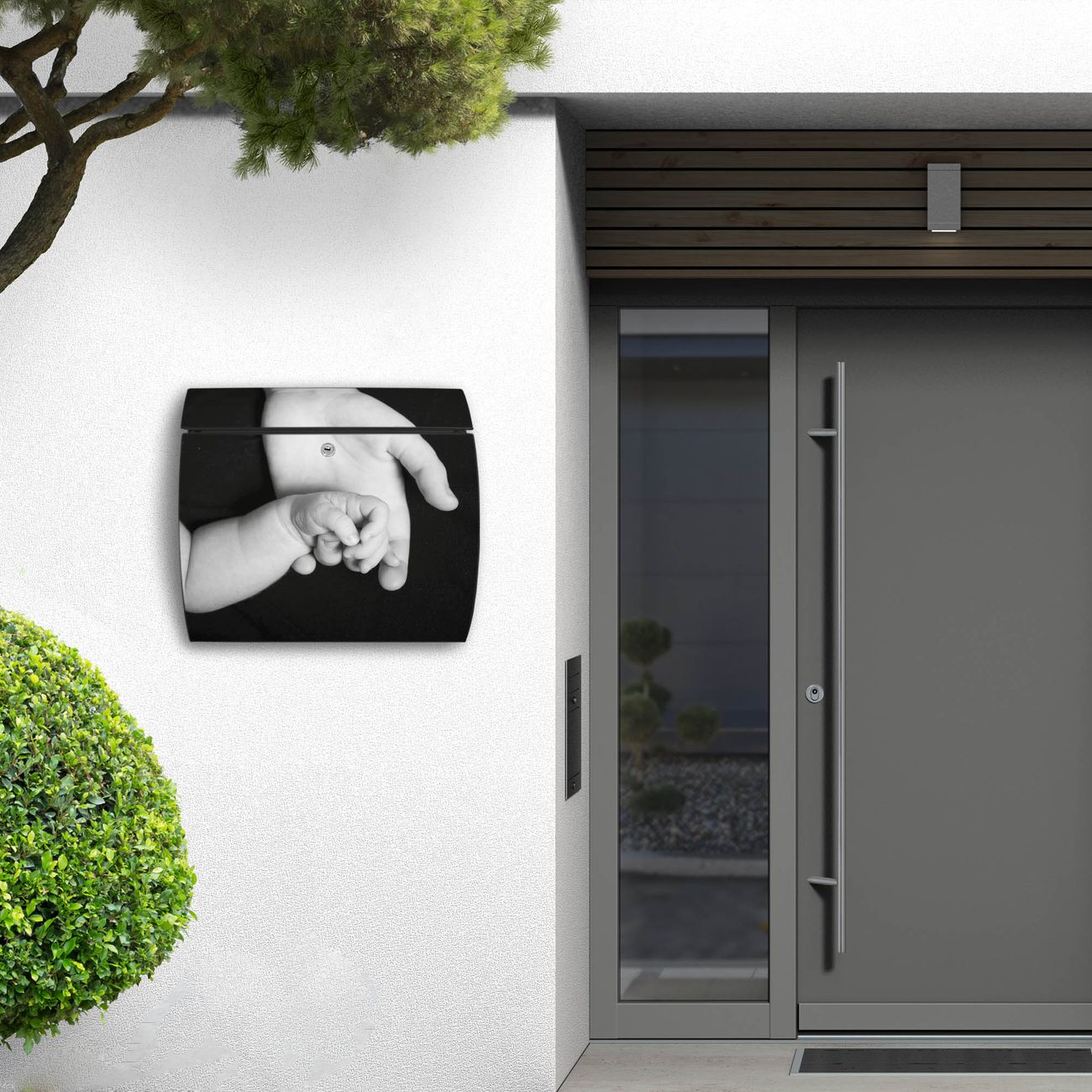 FUNKTION: DESIGN: Das Burg Wächter Modell Toscana mit Motiv Hands hat ein sehr ansprechendes und zeitloses Design und ist besonderes wetterfest. Heben Sie Sich von der tristen grauen Masse ab, ohne auf Funktionalität zu verzichten. Wir bieten Ihnen ebenfalls Namensschilder, bereits beschriftet oder frei zu beschriften, und verschiedene selbst gestaltete Bitte-Keine-Werbung-Aufkleber. DETAILS: Der Postkasten besteht aus vollflächig verzinktem Stahl welcher in Anthrazit oder Weiß lackiert wurde oder aus Edelstahl (je nach gewählter Variante). Das Motiv besteht aus einer wetter- und UV-festen Folie, die mit einem Schutzlaminat überzogen ist, durch die Ihren Briefkasten zusätzlich vor Kratzern geschützt ist und auf den Briefkasten kaschiert wurde. Sie erhalten zu Ihrem neuen Design Briefkasten 2 Schlüssel sowie das passende Montagematerial. BANJADO: Ihr Briefkasten wird von Burg Wächter in Deutschland gefertigt und in unserer kleinen Manufaktur von Hand veredelt. Die Motivfolie ist lösungsmittelfrei und schutzlaminiert, dies sorgt für einen langen Halt. Wir legen großen Wert auf die Verbindung von Funktionalität und Design. Sie erhalten besondere Handarbeit aus Sachsen und Made in Germany.