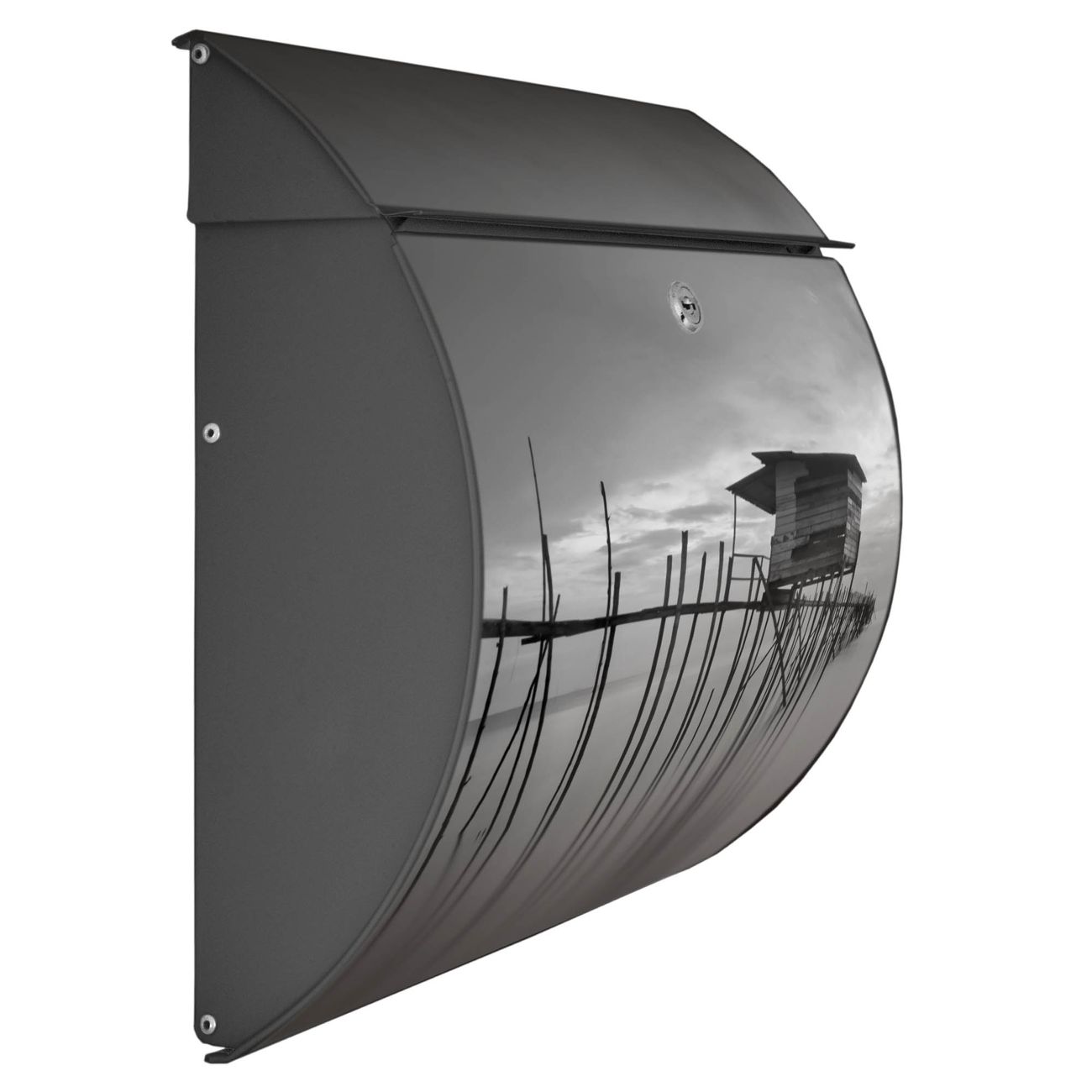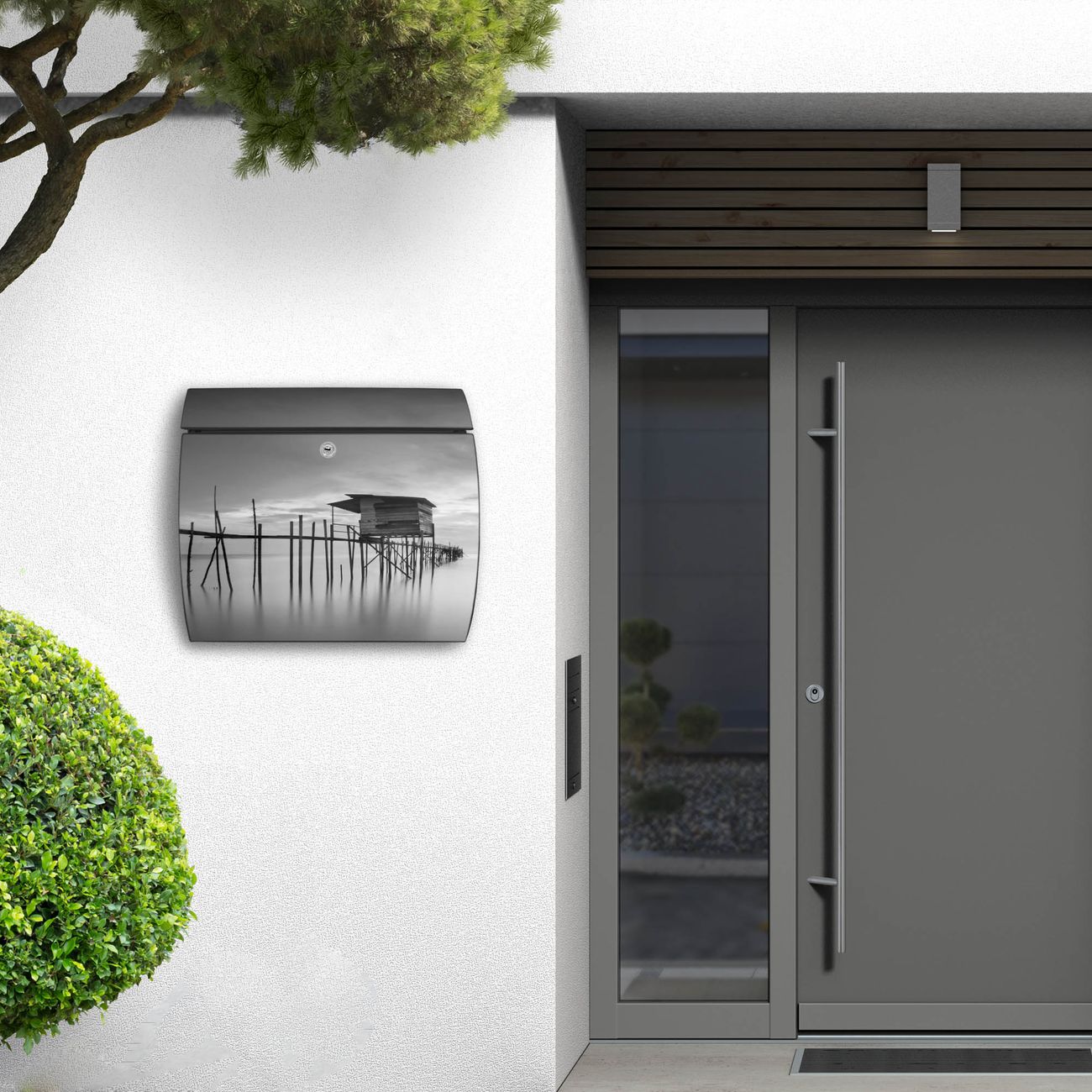 Der geschwungene Burg Wächter Briefkasten Toscana mit Motiv Haus am See bietet Ihnen mit seinem großen Fassungsvermögen genügend Platz auch für große A4 Sendungen. Auf Wunsch können Sie bei uns den passenden Standfuß bestellen und so aus dem Wandbriefkasten einen Standbriefkasten machen. Der integrierte Öffnungsstopp ermöglicht eine einfache Handhabung beim Entnehmen der Post.