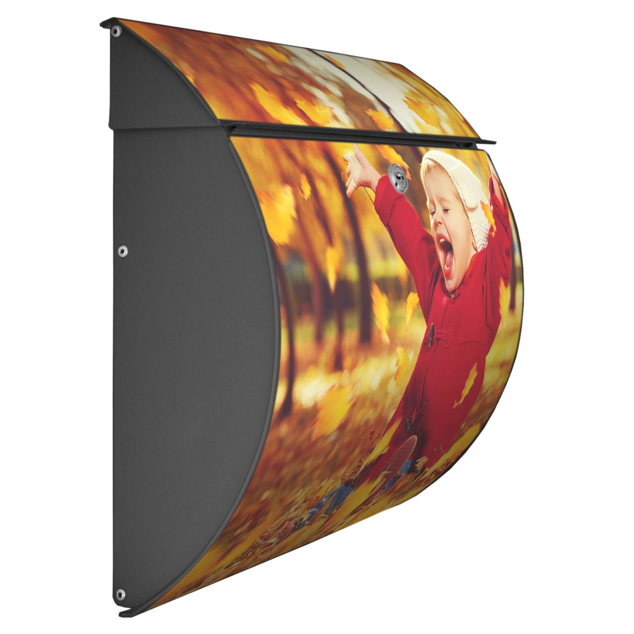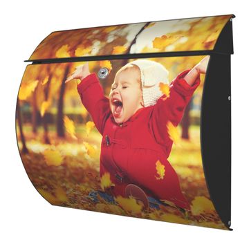 Der geschwungene Burg Wächter Briefkasten Toscana mit Motiv Herbstfreude bietet Ihnen mit seinem großen Fassungsvermögen genügend Platz auch für große A4 Sendungen. Auf Wunsch können Sie bei uns den passenden Standfuß bestellen und so aus dem Wandbriefkasten einen Standbriefkasten machen. Der integrierte Öffnungsstopp ermöglicht eine einfache Handhabung beim Entnehmen der Post.