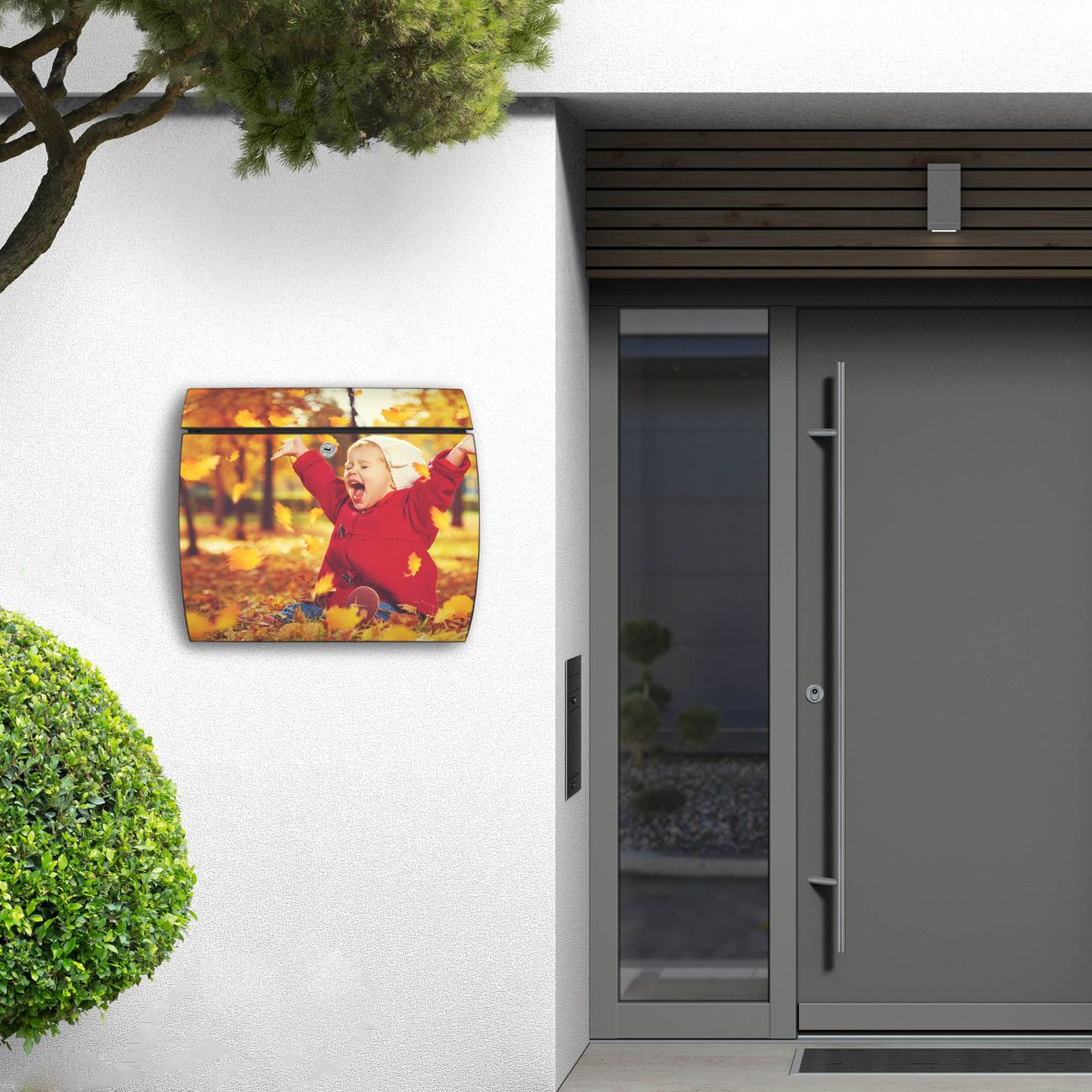 FUNKTION: DESIGN: Das Burg Wächter Modell Toscana mit Motiv Herbstfreude hat ein sehr ansprechendes und zeitloses Design und ist besonderes wetterfest. Heben Sie Sich von der tristen grauen Masse ab, ohne auf Funktionalität zu verzichten. Wir bieten Ihnen ebenfalls Namensschilder, bereits beschriftet oder frei zu beschriften, und verschiedene selbst gestaltete Bitte-Keine-Werbung-Aufkleber. DETAILS: Der Postkasten besteht aus vollflächig verzinktem Stahl welcher in Anthrazit oder Weiß lackiert wurde oder aus Edelstahl (je nach gewählter Variante). Das Motiv besteht aus einer wetter- und UV-festen Folie, die mit einem Schutzlaminat überzogen ist, durch die Ihren Briefkasten zusätzlich vor Kratzern geschützt ist und auf den Briefkasten kaschiert wurde. Sie erhalten zu Ihrem neuen Design Briefkasten 2 Schlüssel sowie das passende Montagematerial. BANJADO: Ihr Briefkasten wird von Burg Wächter in Deutschland gefertigt und in unserer kleinen Manufaktur von Hand veredelt. Die Motivfolie ist lösungsmittelfrei und schutzlaminiert, dies sorgt für einen langen Halt. Wir legen großen Wert auf die Verbindung von Funktionalität und Design. Sie erhalten besondere Handarbeit aus Sachsen und Made in Germany.