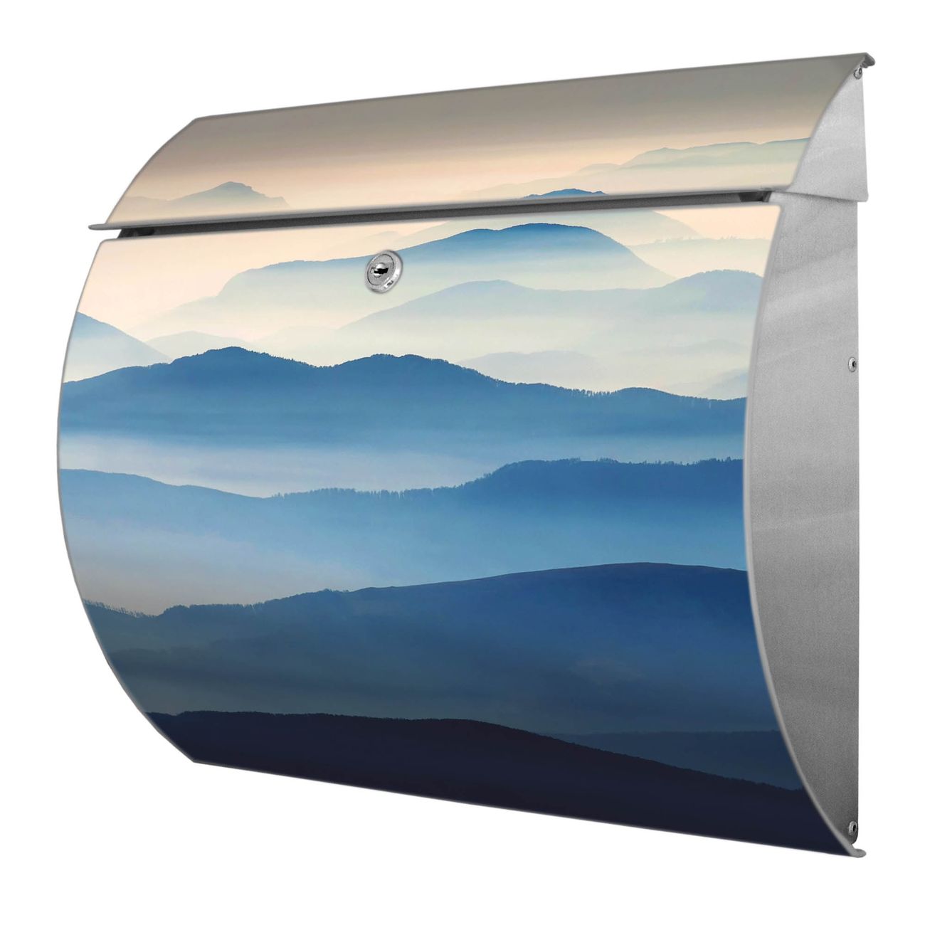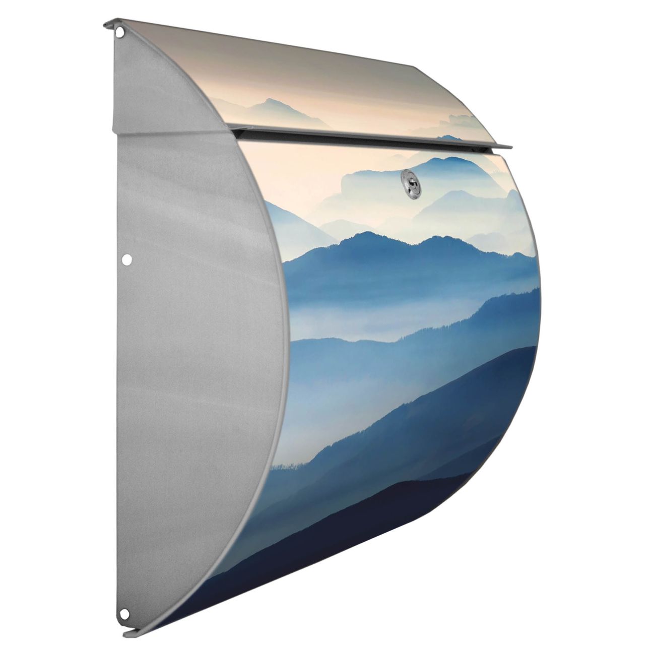 Der geschwungene Burg Wächter Briefkasten Toscana mit Motiv Hinter den Bergen bietet Ihnen mit seinem großen Fassungsvermögen genügend Platz auch für große A4 Sendungen. Auf Wunsch können Sie bei uns den passenden Standfuß bestellen und so aus dem Wandbriefkasten einen Standbriefkasten machen. Der integrierte Öffnungsstopp ermöglicht eine einfache Handhabung beim Entnehmen der Post.