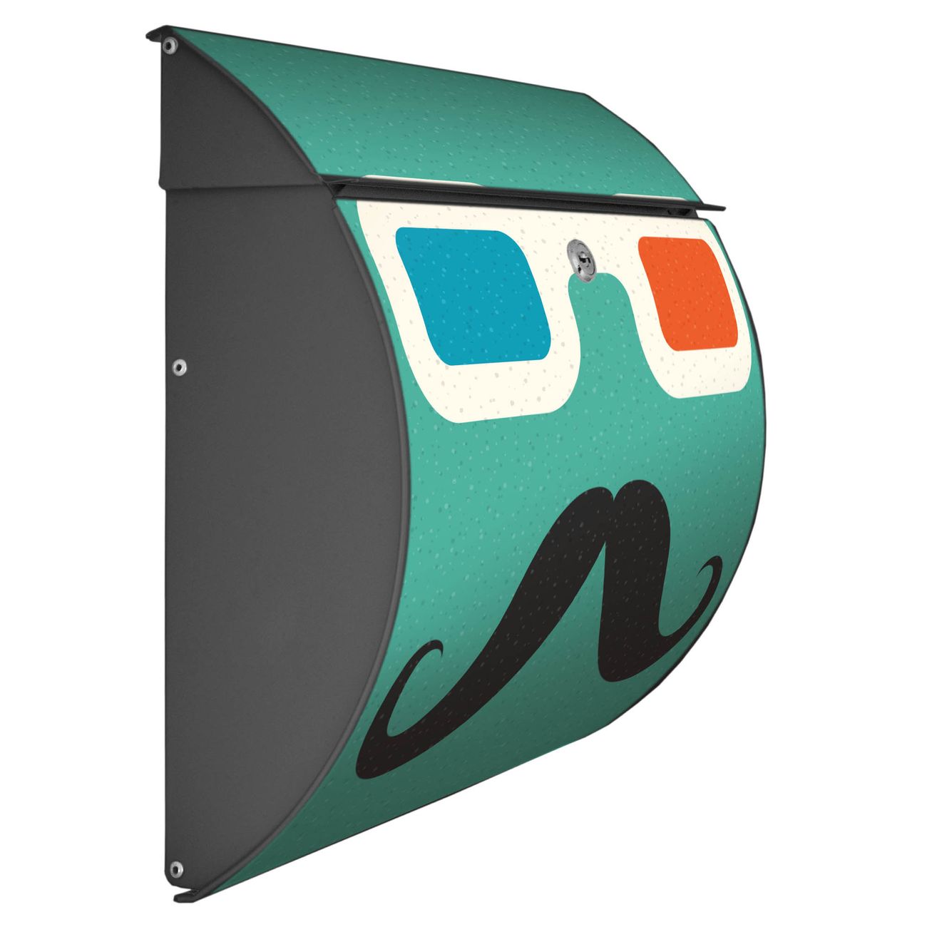 FUNKTION: DESIGN: Das Burg Wächter Modell Toscana mit Motiv Kinobrille hat ein sehr ansprechendes und zeitloses Design und ist besonderes wetterfest. Heben Sie Sich von der tristen grauen Masse ab, ohne auf Funktionalität zu verzichten. Wir bieten Ihnen ebenfalls Namensschilder, bereits beschriftet oder frei zu beschriften, und verschiedene selbst gestaltete Bitte-Keine-Werbung-Aufkleber. DETAILS: Der Postkasten besteht aus vollflächig verzinktem Stahl welcher in Anthrazit oder Weiß lackiert wurde oder aus Edelstahl (je nach gewählter Variante). Das Motiv besteht aus einer wetter- und UV-festen Folie, die mit einem Schutzlaminat überzogen ist, durch die Ihren Briefkasten zusätzlich vor Kratzern geschützt ist und auf den Briefkasten kaschiert wurde. Sie erhalten zu Ihrem neuen Design Briefkasten 2 Schlüssel sowie das passende Montagematerial. BANJADO: Ihr Briefkasten wird von Burg Wächter in Deutschland gefertigt und in unserer kleinen Manufaktur von Hand veredelt. Die Motivfolie ist lösungsmittelfrei und schutzlaminiert, dies sorgt für einen langen Halt. Wir legen großen Wert auf die Verbindung von Funktionalität und Design. Sie erhalten besondere Handarbeit aus Sachsen und Made in Germany.