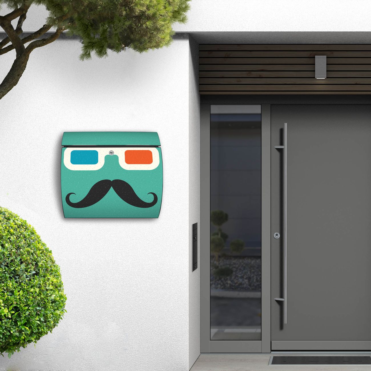 Der geschwungene Burg Wächter Briefkasten Toscana mit Motiv Kinobrille bietet Ihnen mit seinem großen Fassungsvermögen genügend Platz auch für große A4 Sendungen. Auf Wunsch können Sie bei uns den passenden Standfuß bestellen und so aus dem Wandbriefkasten einen Standbriefkasten machen. Der integrierte Öffnungsstopp ermöglicht eine einfache Handhabung beim Entnehmen der Post.