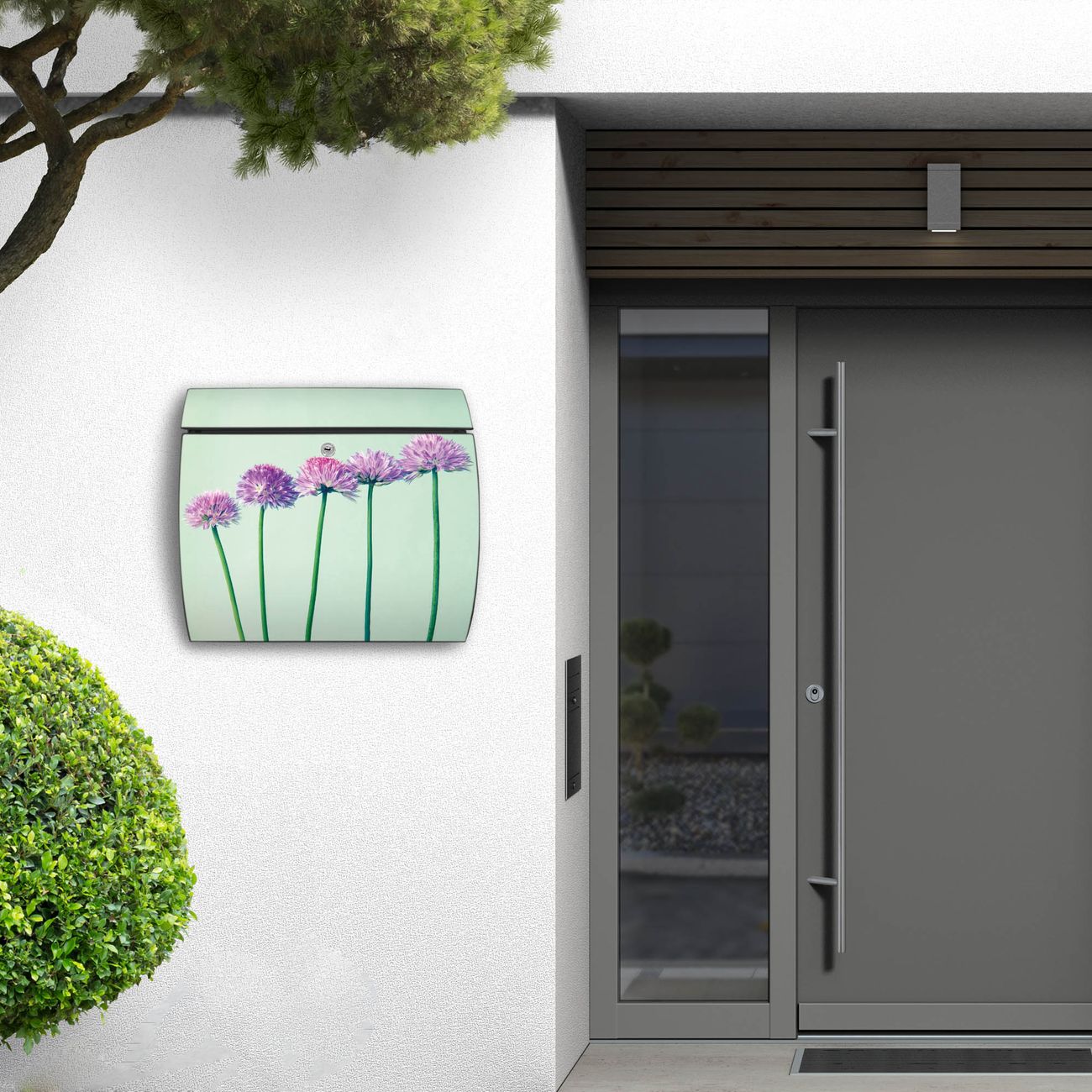 FUNKTION: DESIGN: Das Burg Wächter Modell Toscana mit Motiv Klee in Reihe hat ein sehr ansprechendes und zeitloses Design und ist besonderes wetterfest. Heben Sie Sich von der tristen grauen Masse ab, ohne auf Funktionalität zu verzichten. Wir bieten Ihnen ebenfalls Namensschilder, bereits beschriftet oder frei zu beschriften, und verschiedene selbst gestaltete Bitte-Keine-Werbung-Aufkleber. DETAILS: Der Postkasten besteht aus vollflächig verzinktem Stahl welcher in Anthrazit oder Weiß lackiert wurde oder aus Edelstahl (je nach gewählter Variante). Das Motiv besteht aus einer wetter- und UV-festen Folie, die mit einem Schutzlaminat überzogen ist, durch die Ihren Briefkasten zusätzlich vor Kratzern geschützt ist und auf den Briefkasten kaschiert wurde. Sie erhalten zu Ihrem neuen Design Briefkasten 2 Schlüssel sowie das passende Montagematerial. BANJADO: Ihr Briefkasten wird von Burg Wächter in Deutschland gefertigt und in unserer kleinen Manufaktur von Hand veredelt. Die Motivfolie ist lösungsmittelfrei und schutzlaminiert, dies sorgt für einen langen Halt. Wir legen großen Wert auf die Verbindung von Funktionalität und Design. Sie erhalten besondere Handarbeit aus Sachsen und Made in Germany.